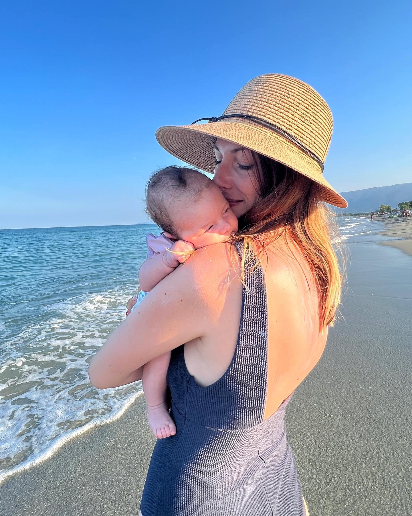 Привет от гръцко, минавам са кажа, че почивката ни е супер. Само една сутрин валя и се радваме на не много високи температури - 25 градуса и всички сме на плажа до 1, после ядем и ги приспивам. Те спят с баща си, а аз пия фрапе в момента сама на плажа, че и тен имам! Бебето ни е страхотно пу пу, само като огладнява и се чува гласа. Пълно е с други деца и бебета, не знам защото е толкова малка все още ли или просто ще си е кротичка, но нашата е бонбон. Гледка си от коша на количката и слухти. Обича като сме в ресторанта да я извадим да зяпа хората и по веднъж я вадя на шезлонга на сянка да зяпа морето. Но като цяло избягвам и си седи в количката и си спи на плажа от 9 до 1, защото колкото и да е топло има вятър. Баткото е щурчо естествено и ни топи лагерите ама няма начин, едното трябва да компенсира 😃 Тази нощ я кърмих в 2:30 и дадох мляко после и спа до 7 сутринта. После пак кърмих и откарахме до 8:30. Честно казано нямам идея колко време кърмя, нито колко често за деня, но баджаците видимо растат и не се притеснявам. Simple Smile Утре ще и правим морска снимка за месечинката. Не ми се прибира вкъщи… почва всичко на ново, готвене едно друго.😏 Поздрави и ви пращаме слънце.