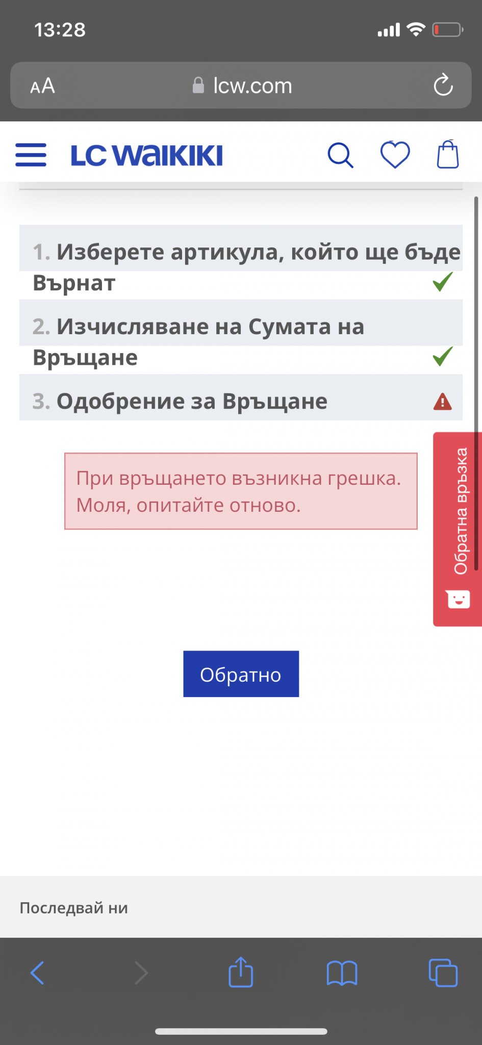 Здравейте! Някой запознат ли е как да направя връщане? В пакета имах само бланка за връщане и никъде прословутия код? А от сайта ми изписва това. За първи път ми се налага да връщам нещо!