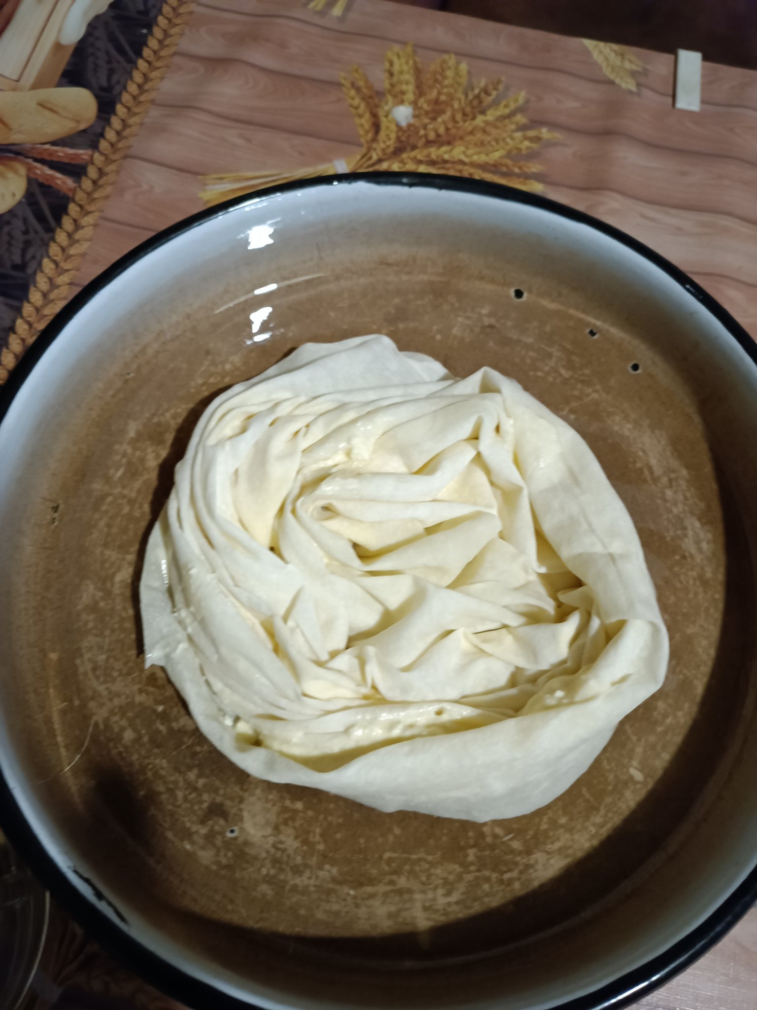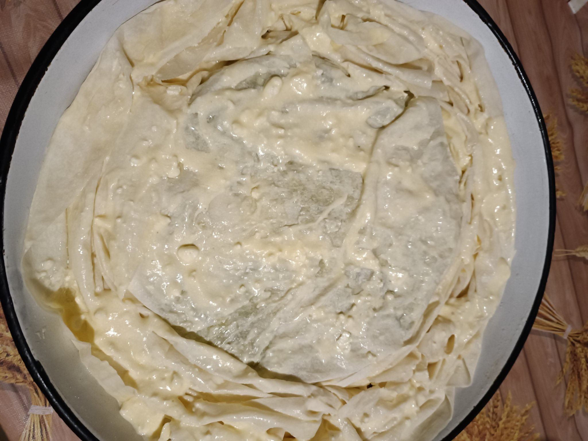 Ето и обещаните снимки за баницата как се прави, едната е с праз, ясно ви е как се задушава, деля 1 кора на две, едната е за основа, а с втората част покривам праза.