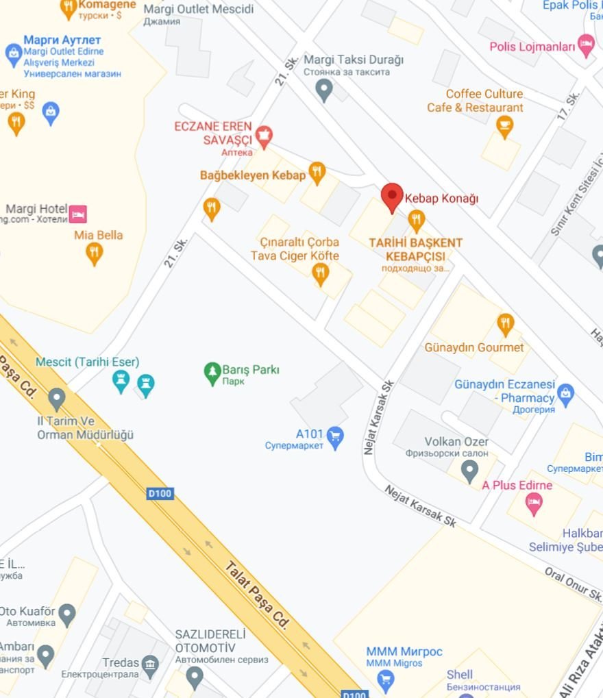 Намира се на главната пешеходна улица вляво когато вървите от Мадо посока Синия пазар. 3 магазина за млечни продукти са един до друг, а след тях има заведение за хранене с печени пилета на грил отпред.