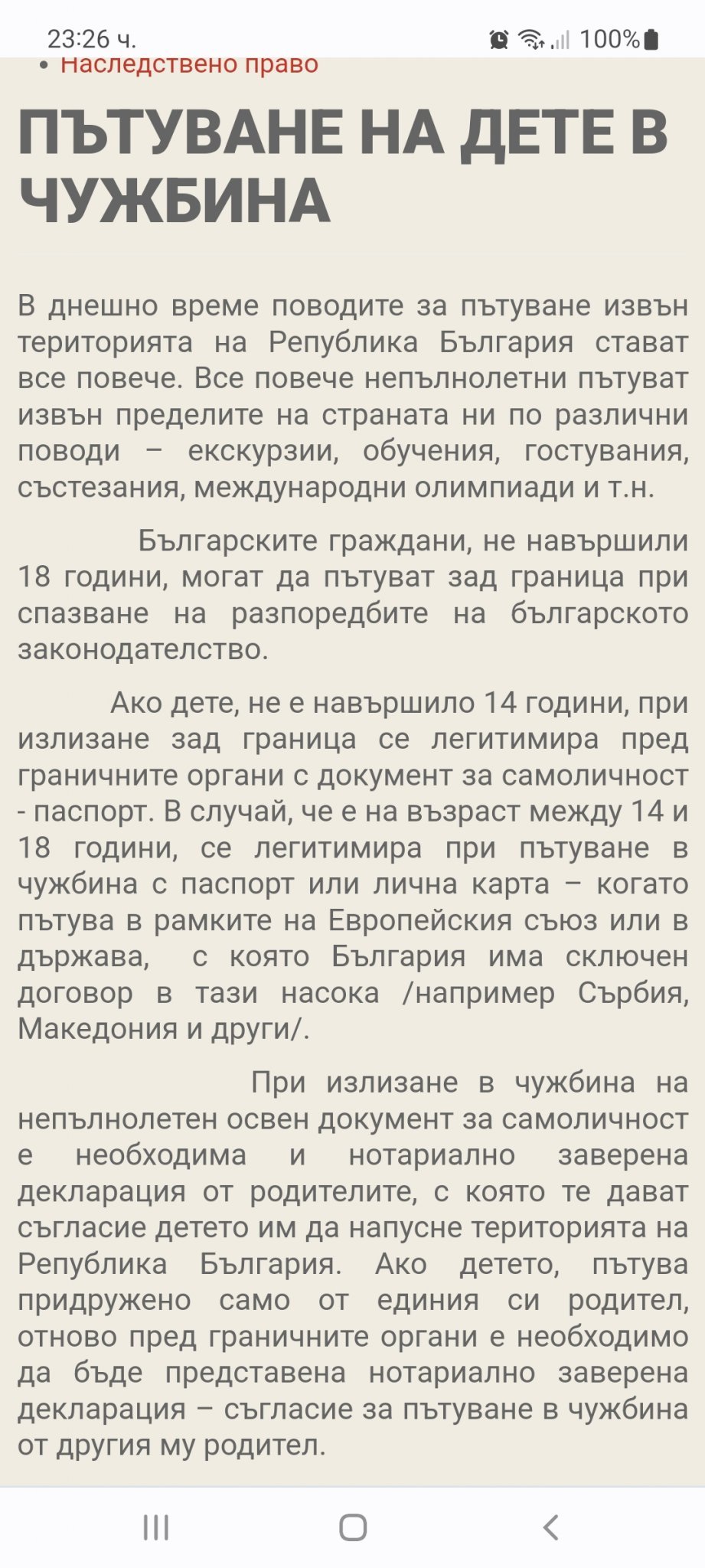 Момичета, как стои въпросът с граничното преминаване на  децата под 18 г? Питам, защото ще пътуваме скоро, синът ми си има паспорт, но позната твърди, че децата с лични карти минават, вярно ли е? Останала съм с идеята, че лица под 18 години са задължително с паспорт, но може и моя грешка да е, не намерих категорично инфо по въпроса.