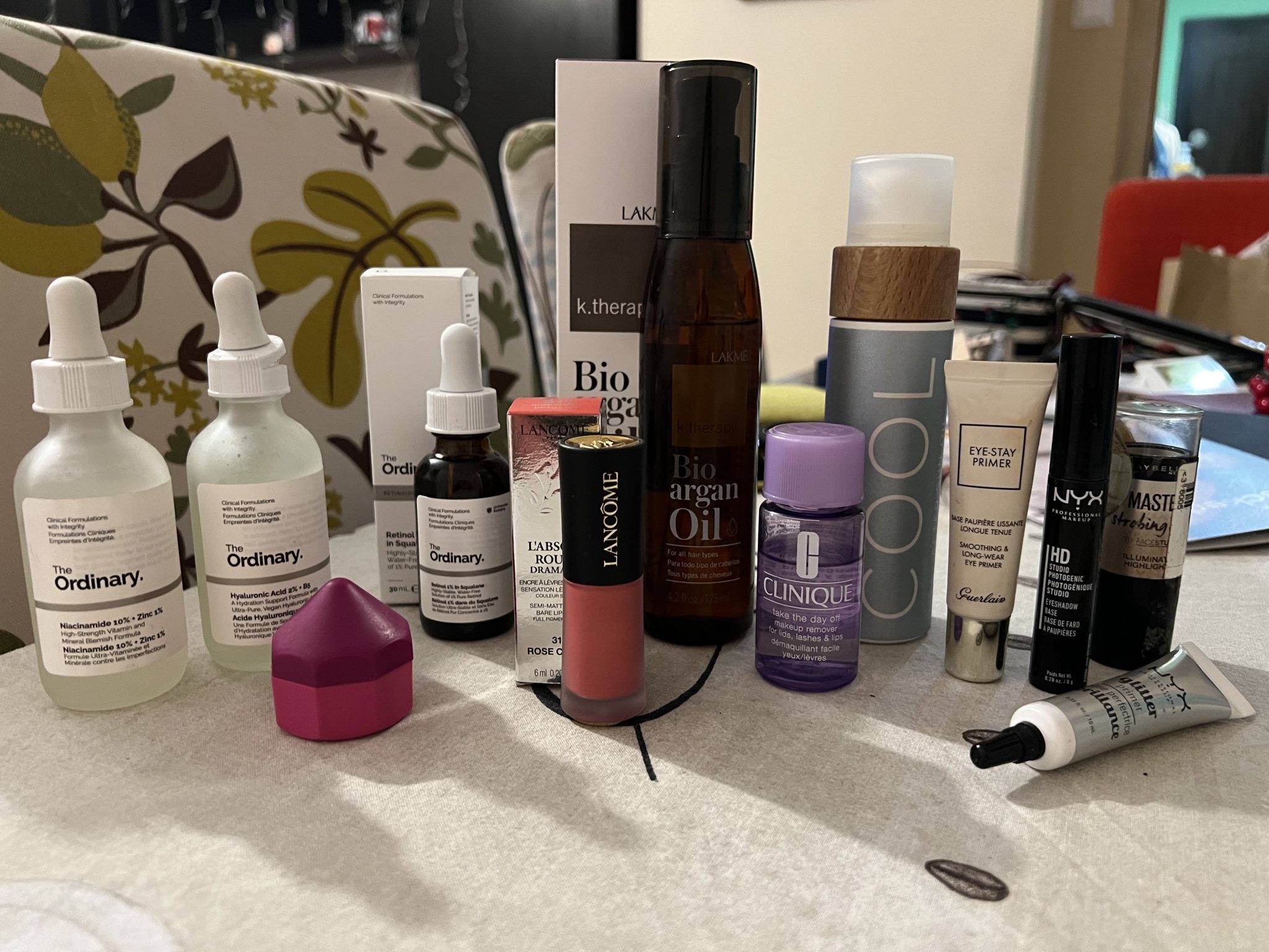 На втората снимка има още няколко продукта на The Ordinary, Cocosolis, Lakme, Clinique, Lancôme, Guerlain, The Body Shop, NYX, Maybelline.