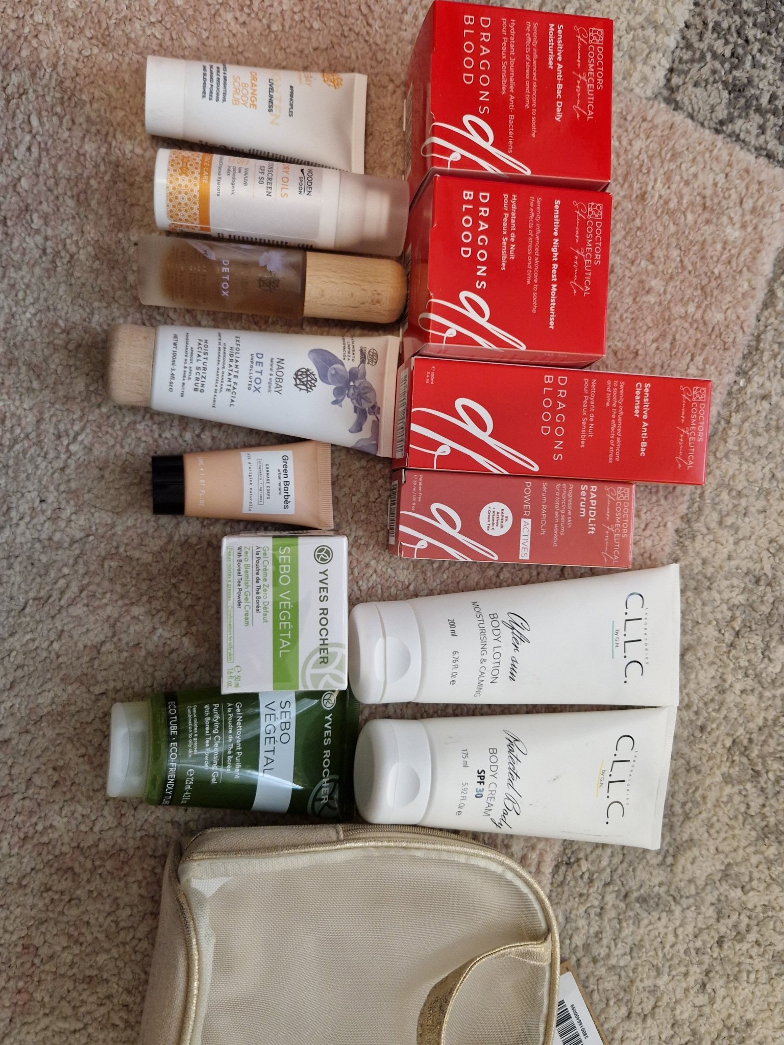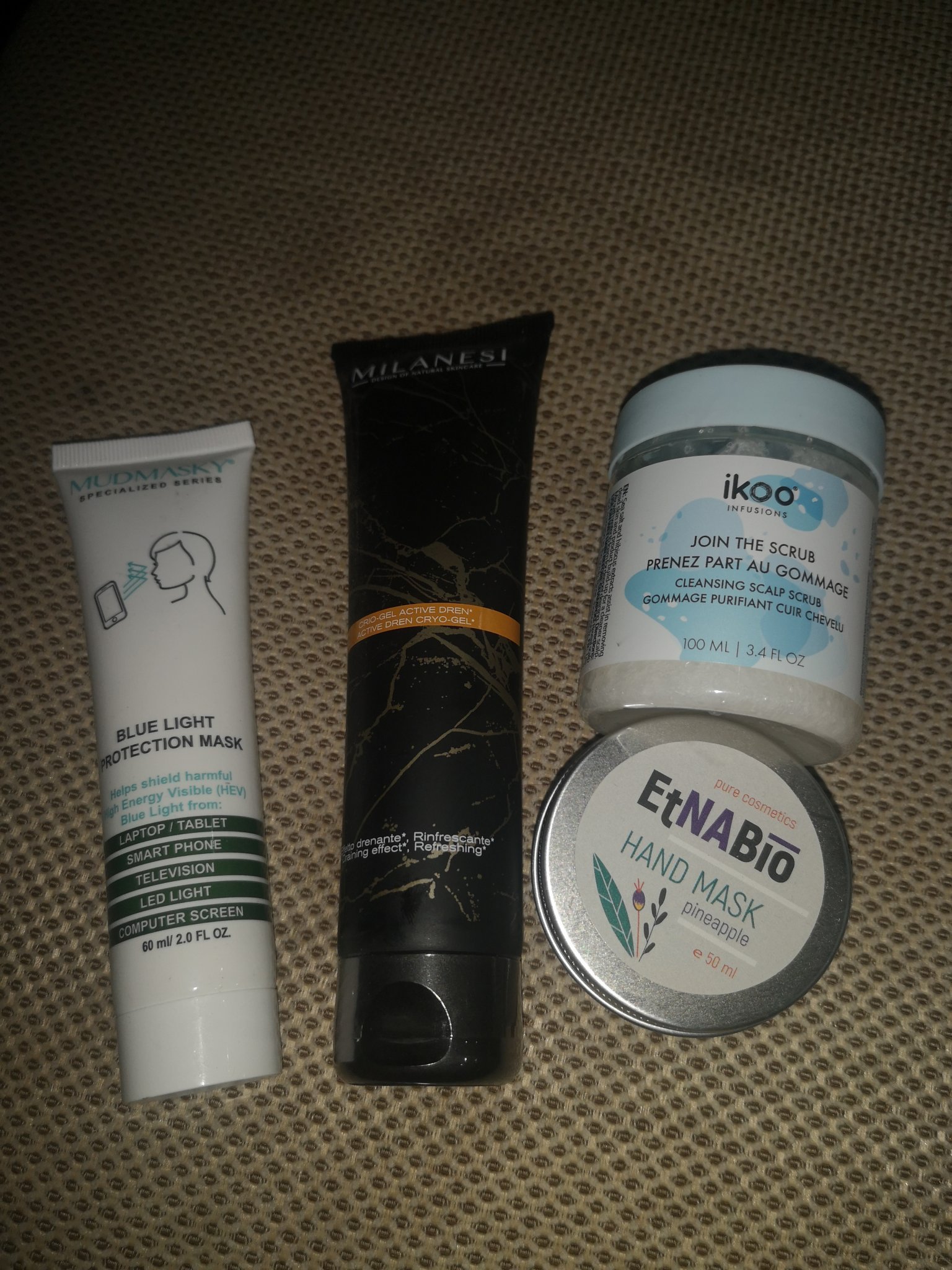 Скрабът за коса е ползван веднъж, останалите неща са чисто нови.
