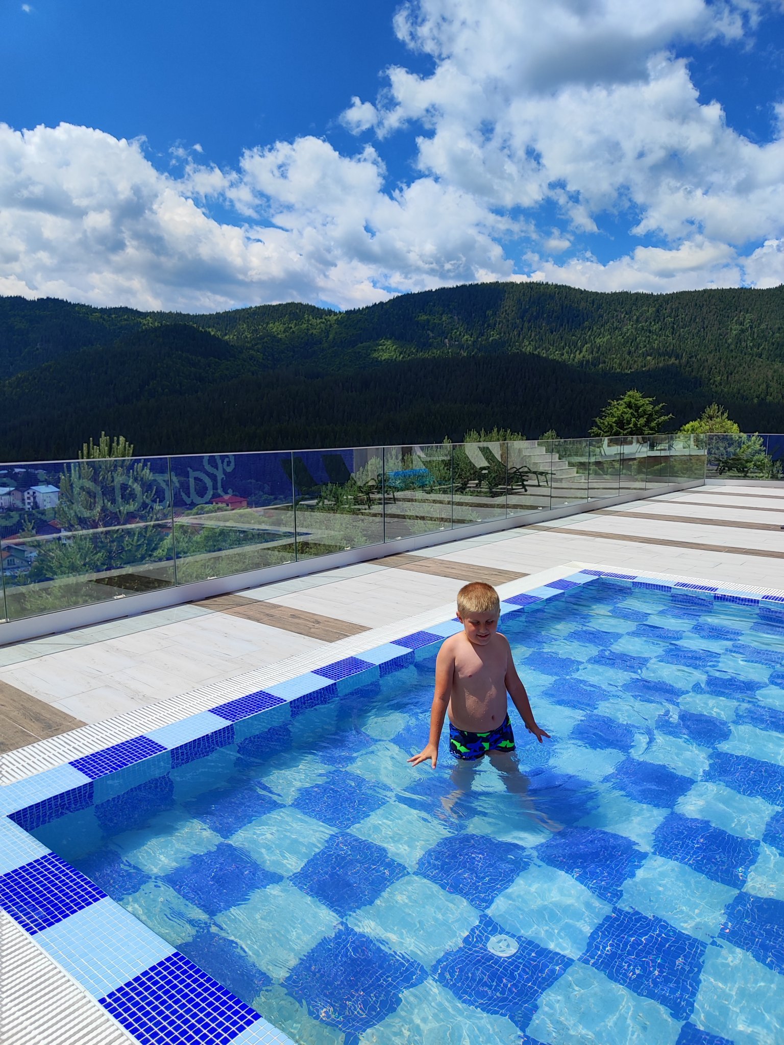 Два басейна има наблизо , които не пускат външни посетители,нищо че не бяха пълни. Един ,от които на Романтика. Хотел Paradise view него басейн посетихме , защото само там ни допуснаха,но водата не е минерална и е студена към хладка. Аз търпя,но ... Да знаете.