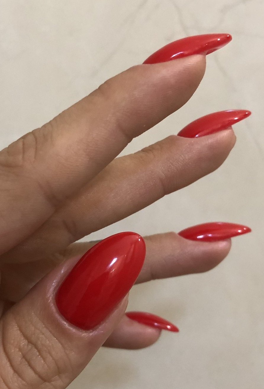 Голямо пилене и оформяне падна. Смяна на формата, два лепени с памук и гел, което за пръв път на предния лак не издържа и се сцепи наново, обикновено държи до израстване. Явно гела е за смяна.