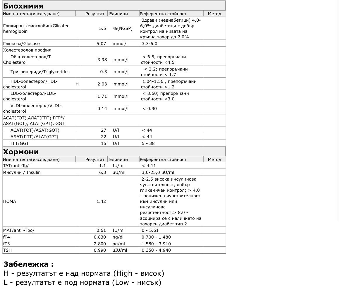 И така неподготвена/без да знам за инсулина и че трябва да се храня богато въглехидратно/ отидох в близка болнична лаборатория. Това са резултатите взети от периферна кръв: