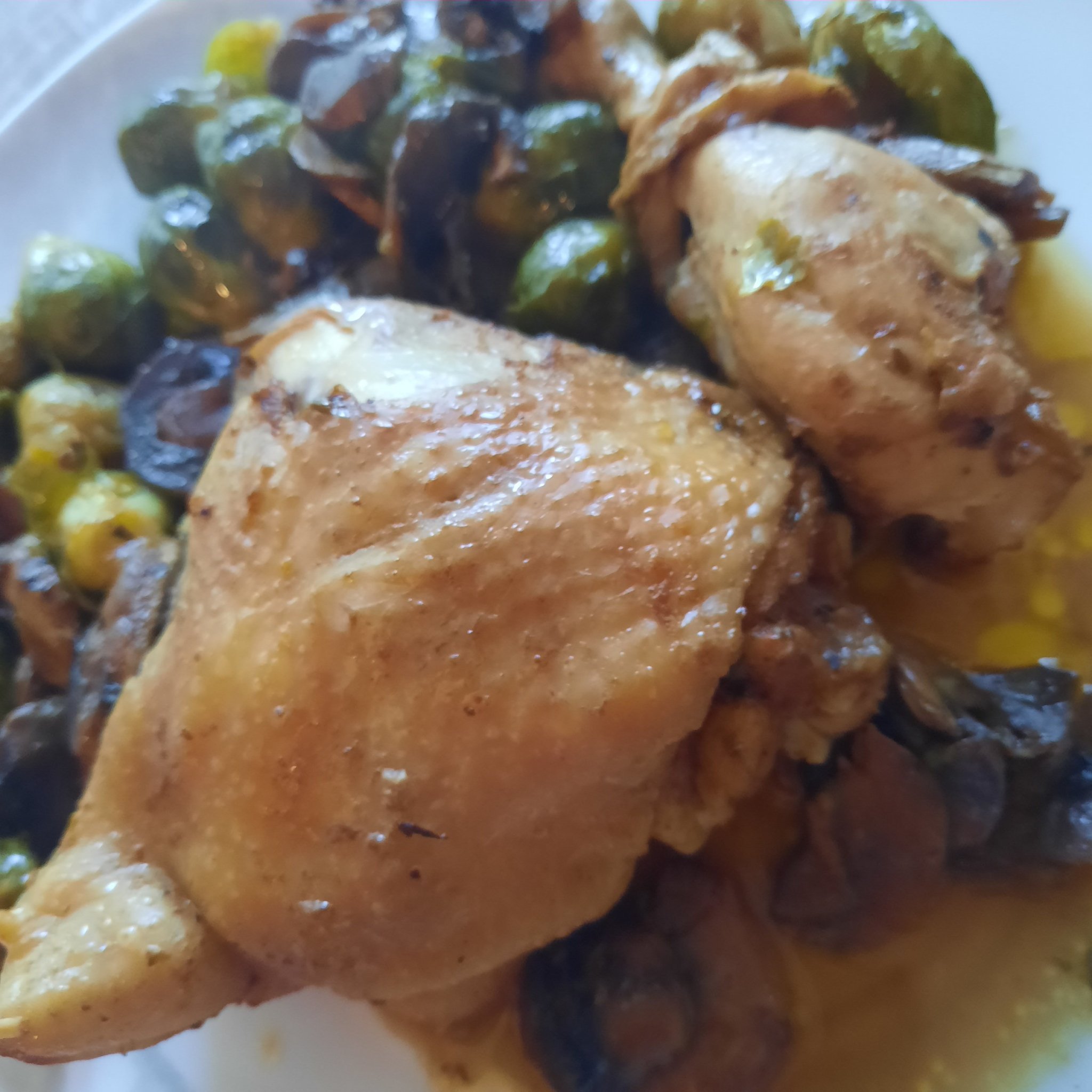 Но днес си направихме пир с пилешко, гъби и брюкселско зеле на фурна