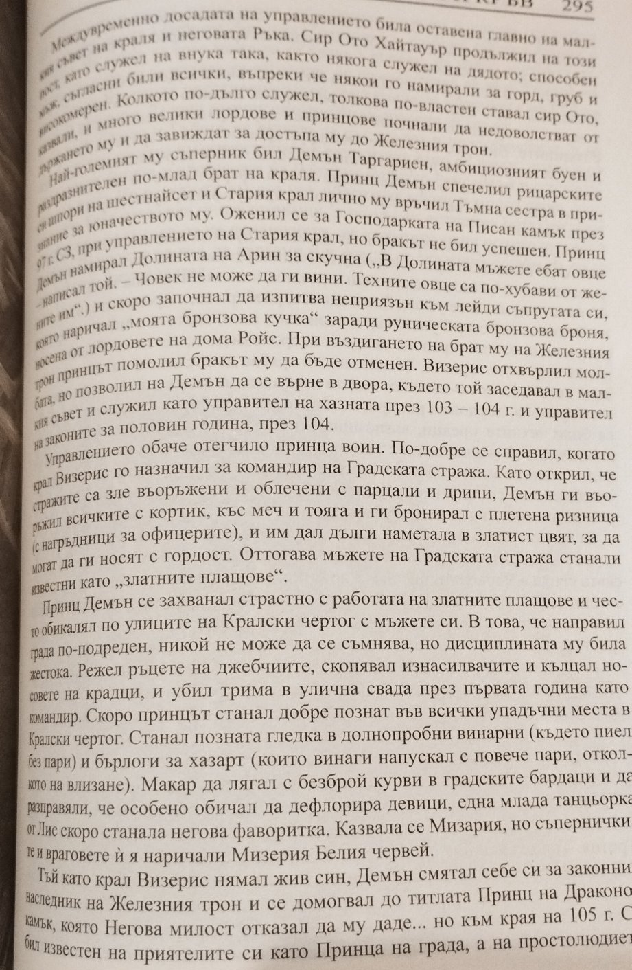 И аз от нейните думи разбрах, че никога не са консумирали брака, което всъщност отваря възможност да се анулира. Демън може и да се е пробвал, но краля не е разрешил. Обаче даже не знам защо тези двамата са се оженили първоначално? Визерис ли го е накарал и по каква причина? Да го махне от Двора?