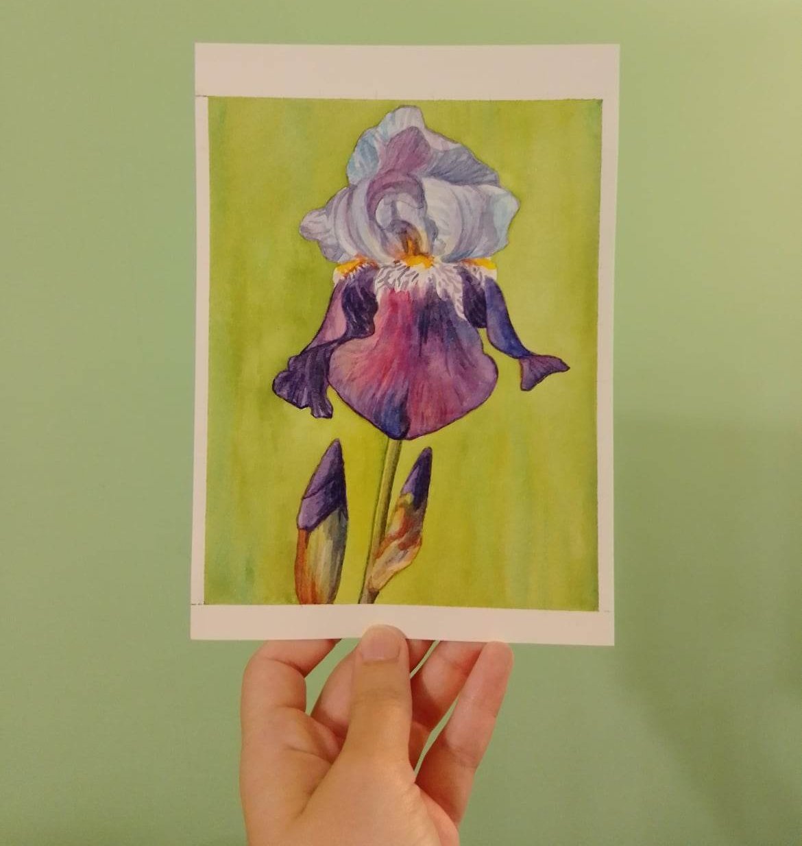 Миналият месец си събрах снимки на ириси - тук от града (имам лилаво и тъмно лилаво, изцяло светло-лилави, розовеещи и един лилав с жълто - трябва да посадят повече от тях, не знам дали защото го намерих трудно, но май ми харесва най-много); канех се да ги рисувам, обаче имах други занимания и нарисувах само един малък:
