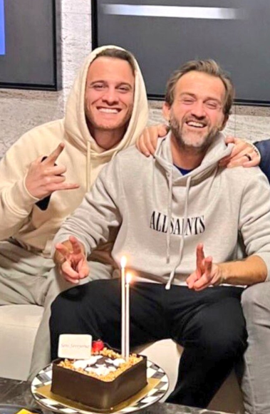 Керем Бюрсин празнува с приятели на рождения ден на Кемал Чьомелек.