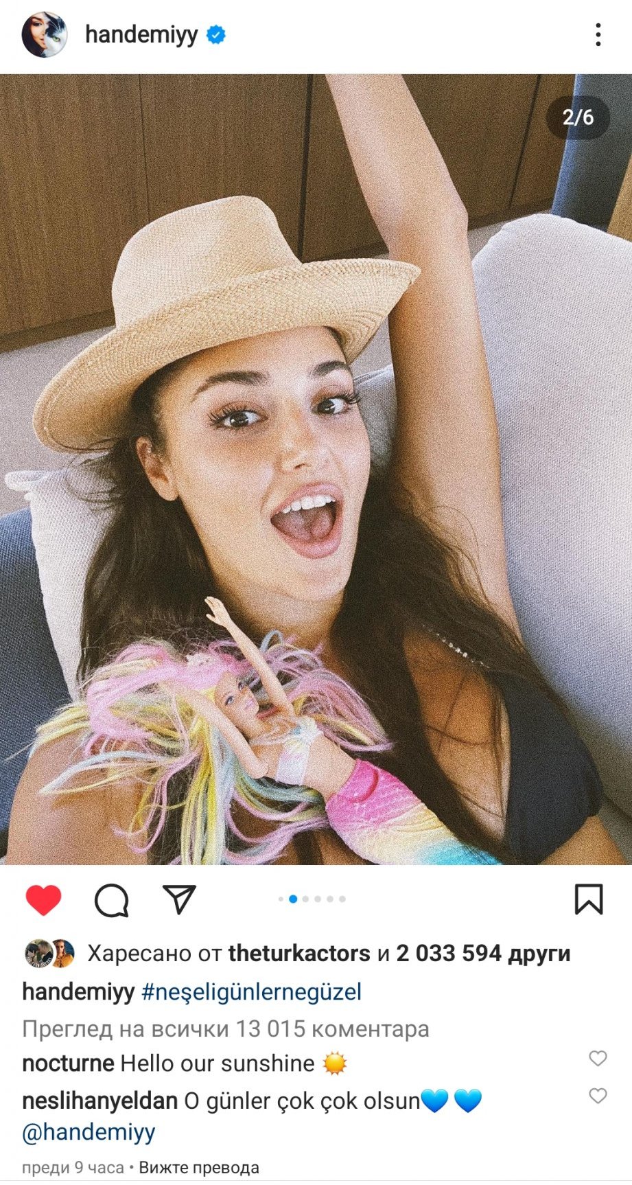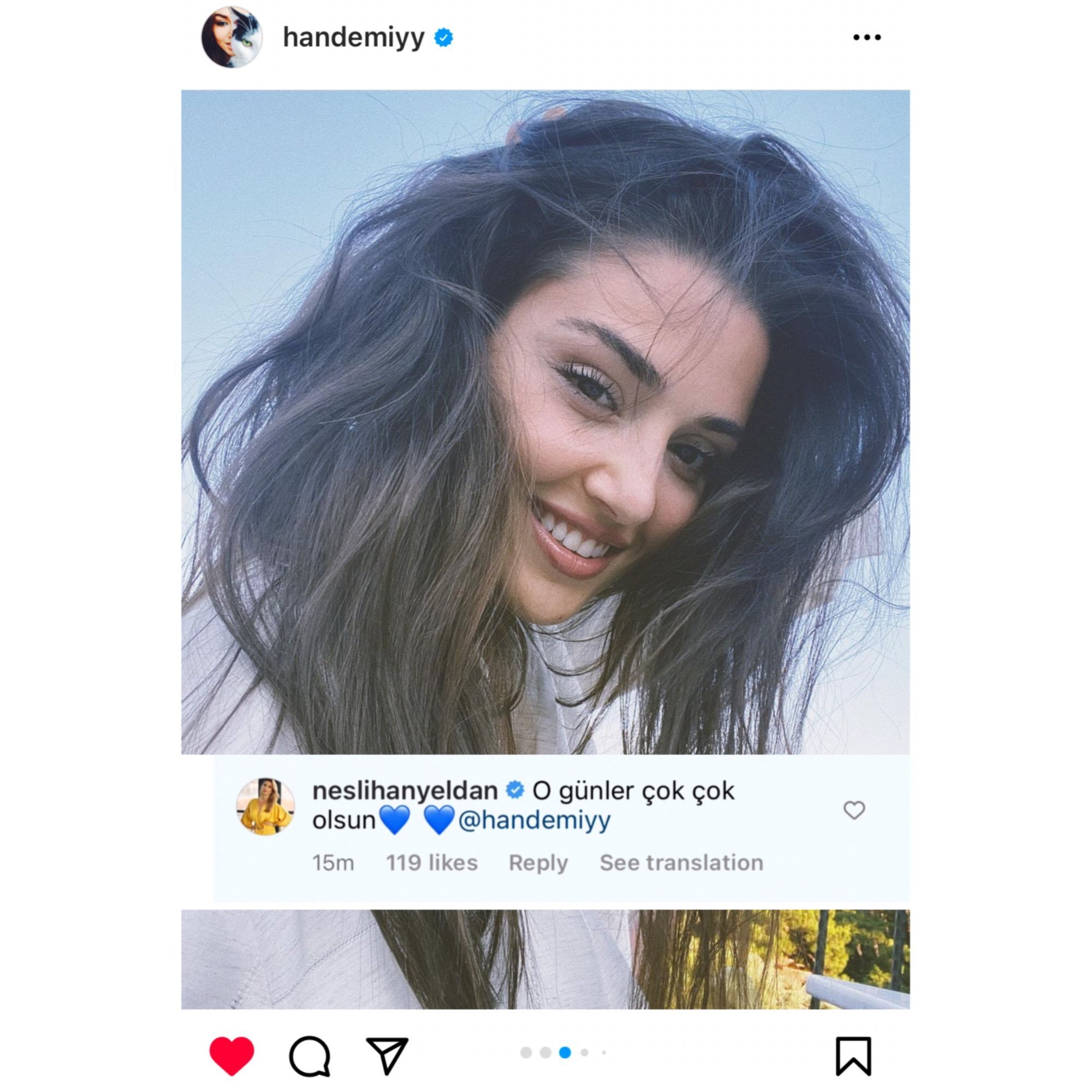 Неслихан Айдан не е останала безучастна. Лайкнала е и двамата. Под снимката на Ханде е написала: "Нека тези дни са много".