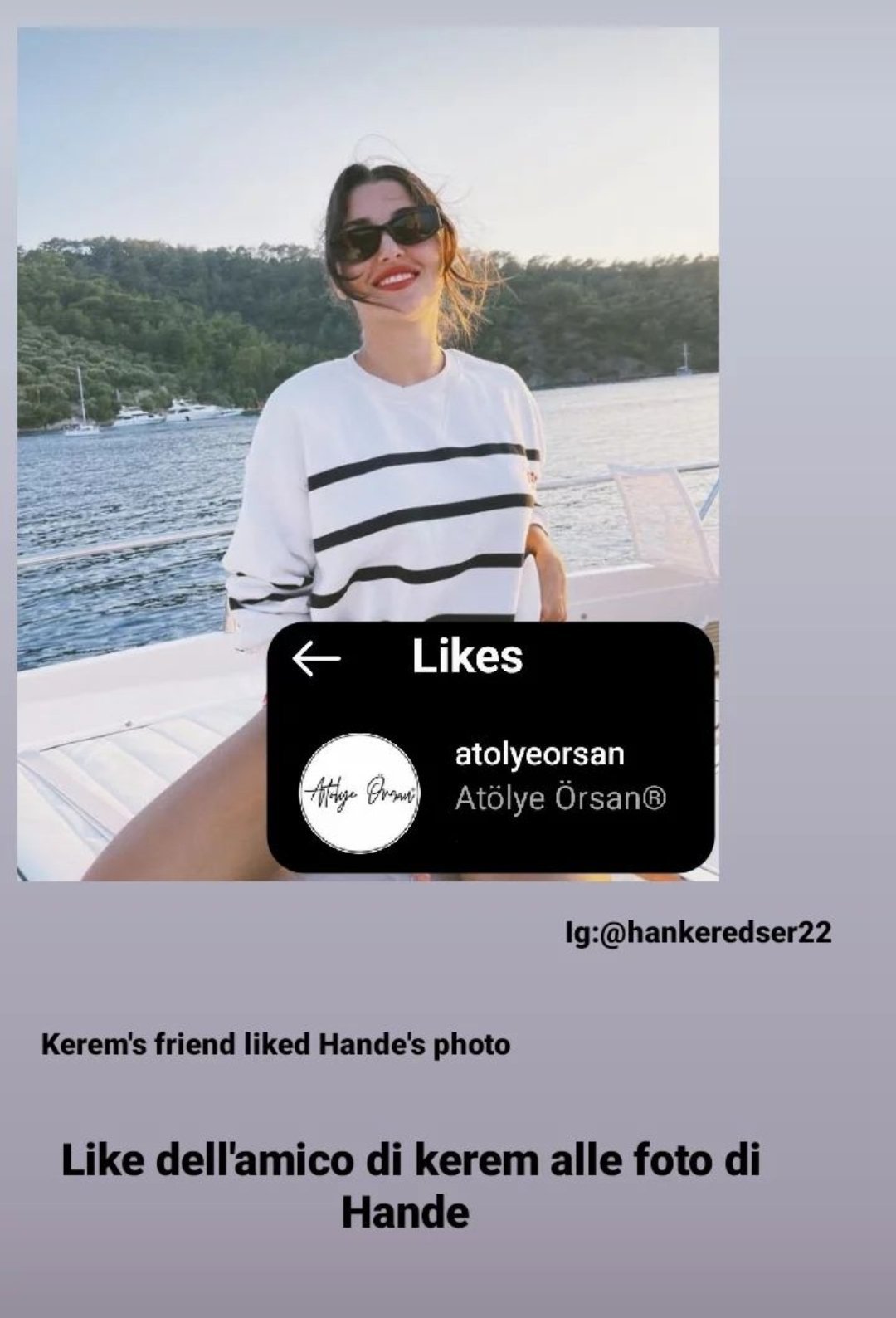 И нещо любопитно от последния час. Стар познайник харесва отново снимките на Ханде след като беше спрял през февруари. Atolye Orsan е акаунтът на приятеля на Керем, който изработва ножове и брадви. Любопитно 👀