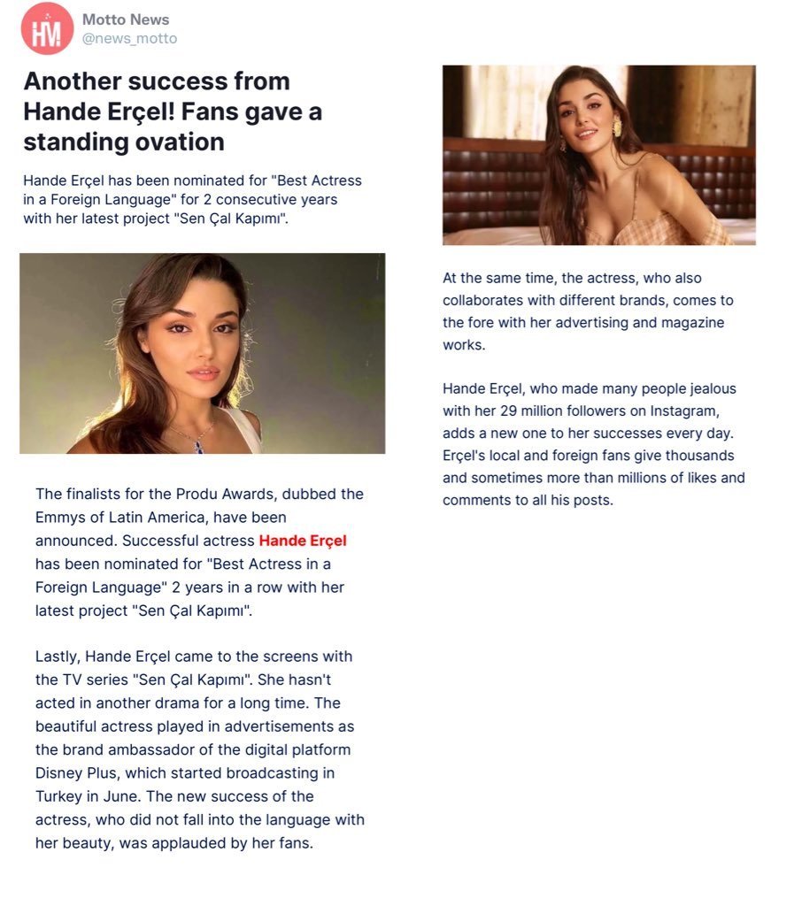 Не знам Ханде какво, с кой и за коя продукция ще избере да играе и снима, но аз ще я гледам с всеки и във всяка роля. В интервюто си каза, че сценария трябва да я докосне, развълнува сърцето й, за да избере точно него. Така че тя и екипа й знаят най-добре какъв проект ще донесе желаните положителни резултати за кариерата й.