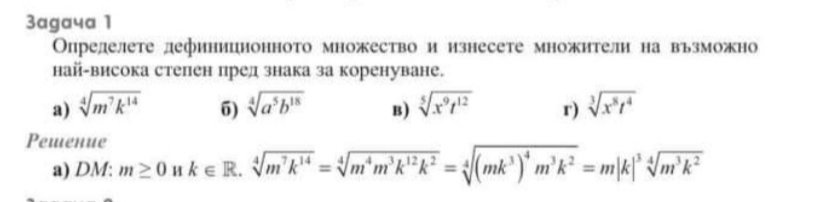 k е повдигнато на четна степен и затова може да е и отрицателно число. k^14 e положително число. Затова пък и k излиза от корена с модул.