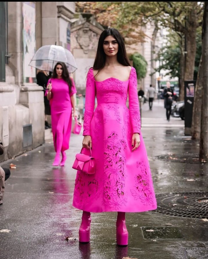 Розовото оцветяване е експериментален, но дълбоко човешки жест, който подчертава индивидуалността, улавяйки ценности и чувства. Нюансът на розовото от Pierpaolo Piccioli, за който Valentino си сътрудничи с Pantone Color Institute, за да създаде уникална идентичност, е индивидуален и неповторим сам по себе си.