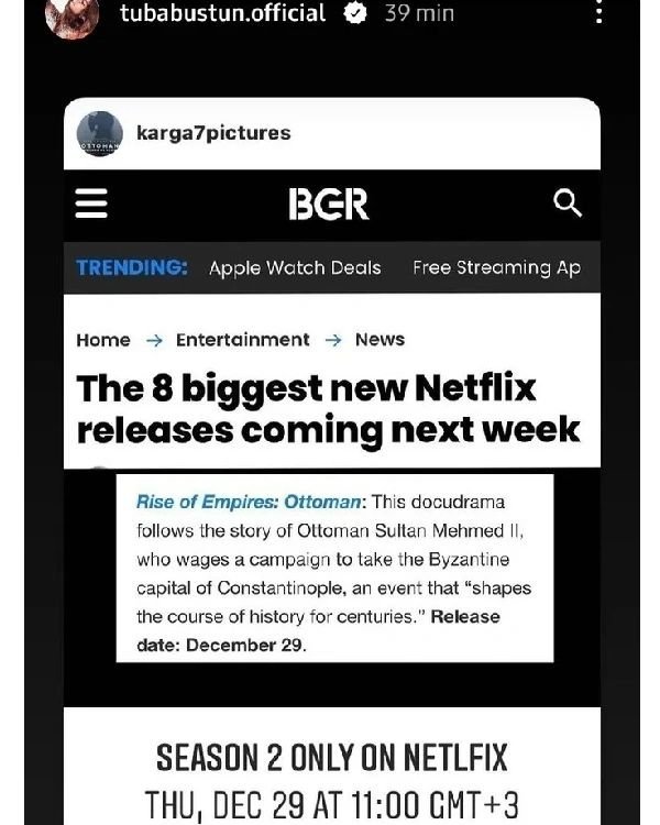 Вчера Туба е добавила към историята на Instagram #TubaBüyüküstün