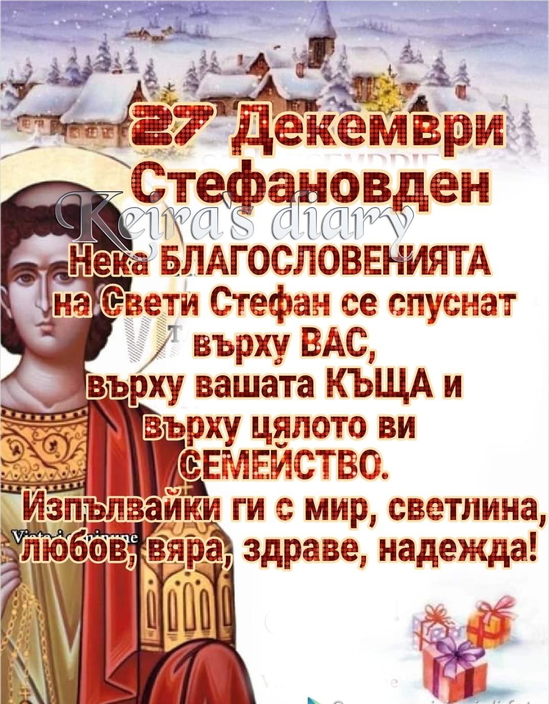 По-късно през деня ще празнуват всички с имената Стефан, Стефка, Стоян, Стоянка...  Да са здрави и да сбъдват мечтите си! Hands Pray