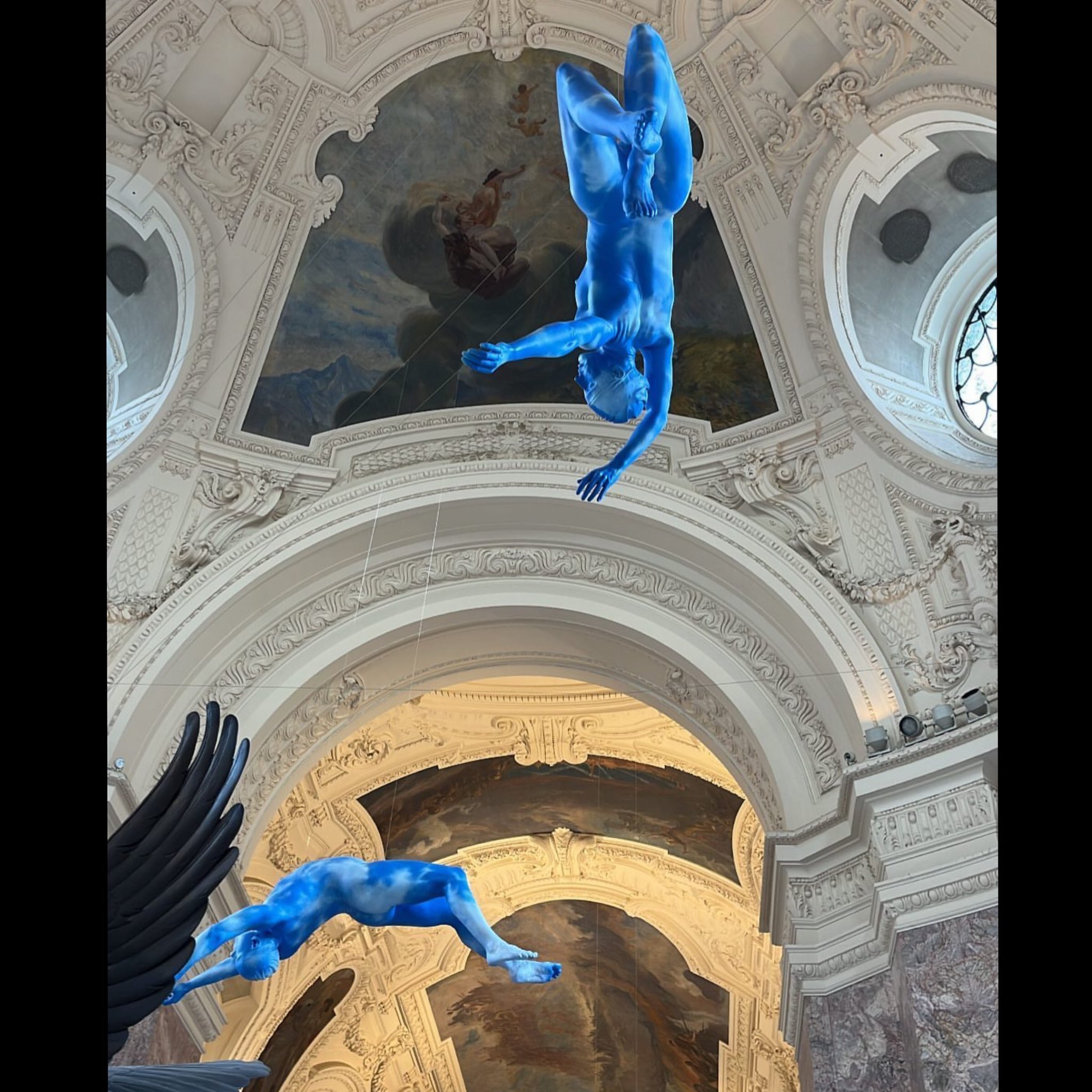 Наконец, художник принял во внимание работы, принадлежащие Малому дворцу, с которыми здесь сталкиваются его собственные. Он обратился к антропоморфным скульптурам из коллекции музея, чтобы лучше «контекстуализировать» обнажённых тел, и окружил обожжённый до блеска цилиндр четырьмя картинами Эжена Карьера.