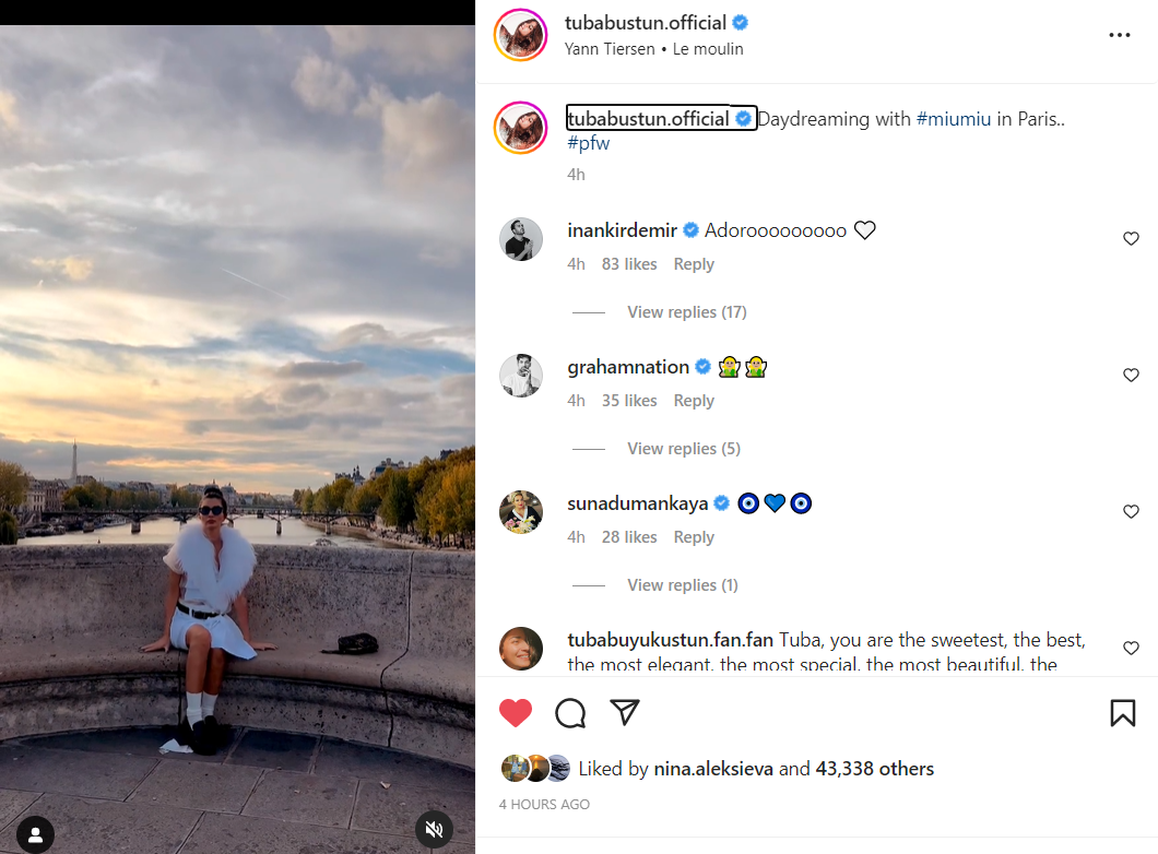 Краткото видео, което Туба е споделила на стената си в ИГ, за което ти и Снинова сте дали линкове, Туба е озаглавила:"Мечтание с МиуМиу в Париж"