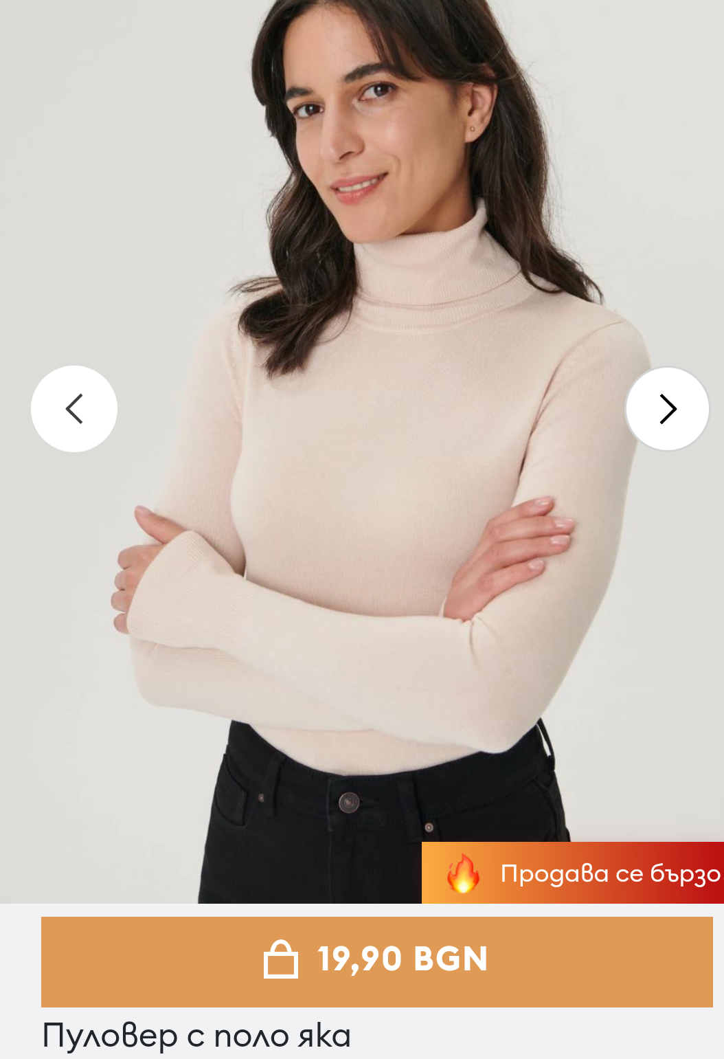 Взех го в комбинация с пуловер-поло телесен цвят, като размер Л ми беше малък (поло яката ми убиваше, много стегната), размер ХЛ ми дойде точен (нося Л по принцип).