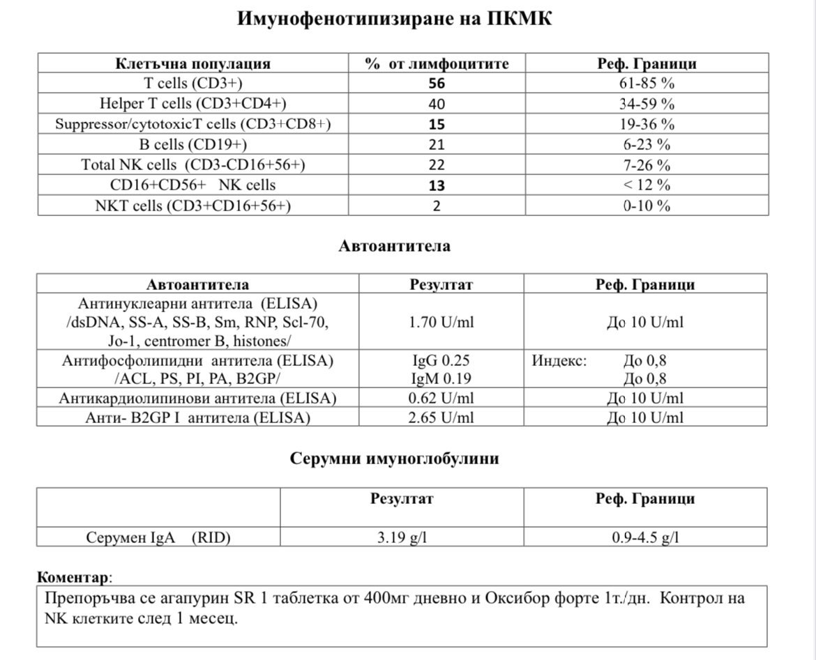 Здравейте, може ли мнение по тези изследвания? Тъй като от имунолозите по телефона нищо не разбрах. С две спонтанни забременявания и два миседа в 6-7 гс.