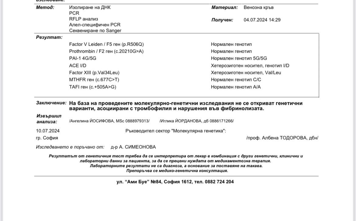 Извинете ме, ще добавя и генетичните за тромбофолии: