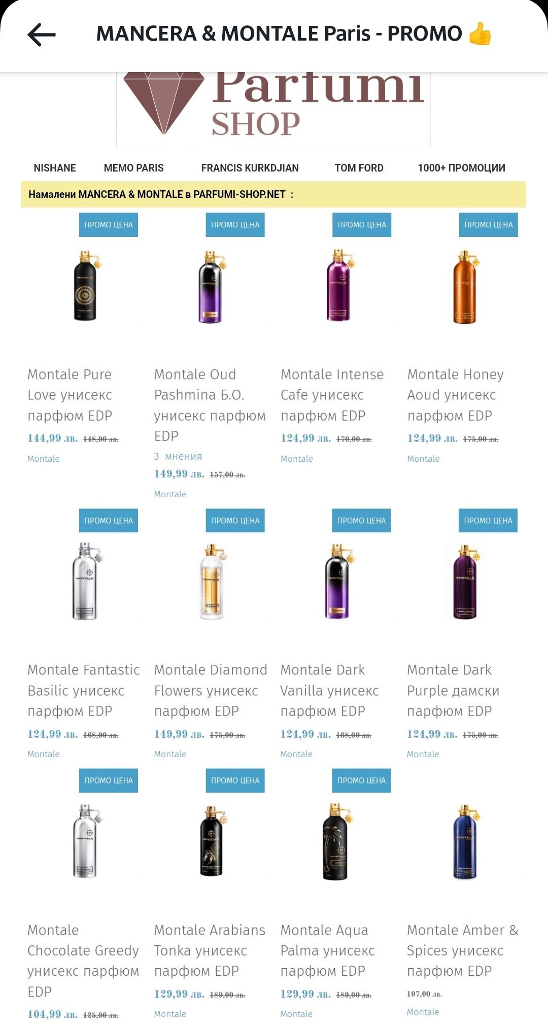 Монтала, който искам и все отлагам в parfumishop.net е намален точно с 2лв. и пак е по-скъп отколкото в другите изпитани сайтове. Може би ще изчакам.