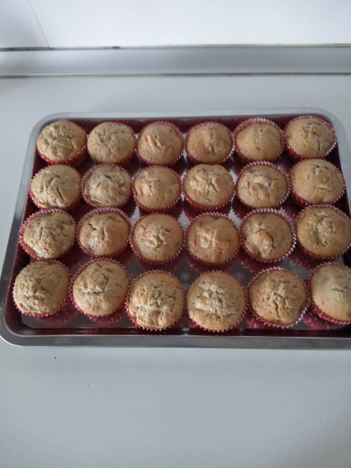 Правих мъфини с ръжено брашно, ябълки и орехи. Все си мислех, че съм направила 42 бройки, а като ги подредих в подноса се оказа, че са много по- малко.
