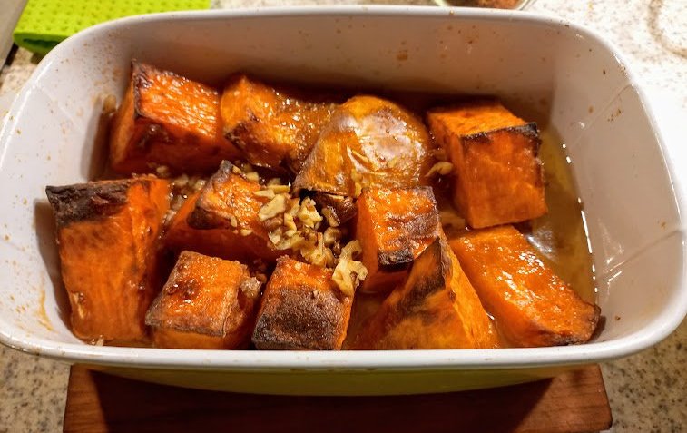 аз я запекох в глинена тавичка, не в сач. Но няма да има никакъв проблем да я запечеш в каквато и да е тава или тиган, който може да пъхнеш във фурната. Може също в чугунена тавичка/тиган; глинена тенджера дори, стига да е с по-широко гърло и да не е много голяма.