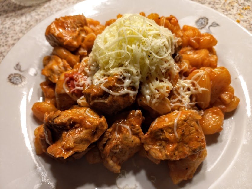 Рагу с паста в кукъра. Не ми хареса, ако го бях посолила, може би щеше да е вкусно.Така става, като разчитам на солта в другите продукти. Внука го хареса.