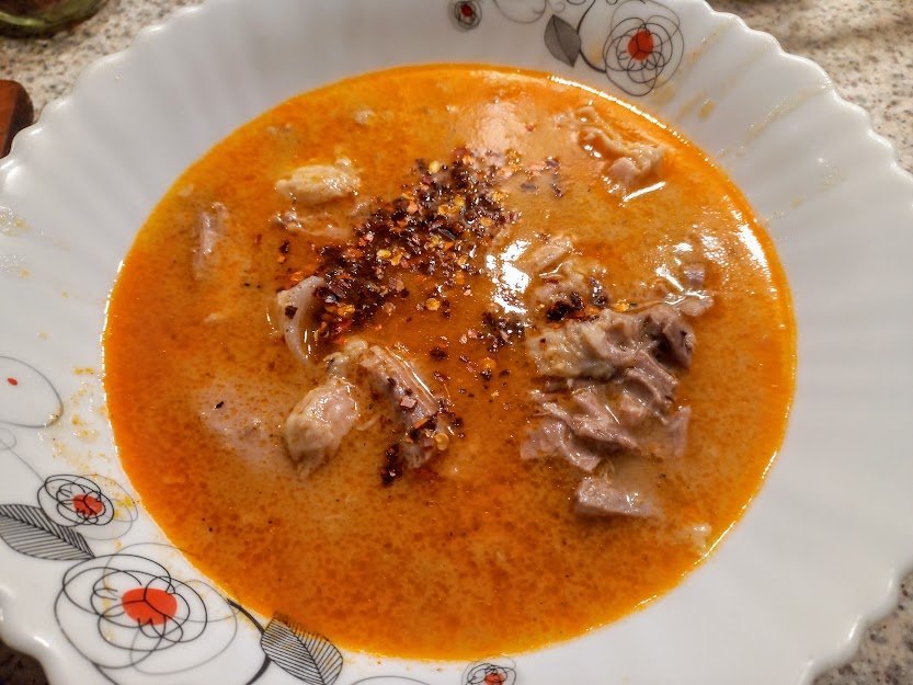 Мен пък това ме заинтригува. Харесвам бистър бульон. Съвсем никакво овкусяване ли няма? Месото какво е? Овче? Сгъстява ли се с нещо? Изобщо, разкажи ако може.