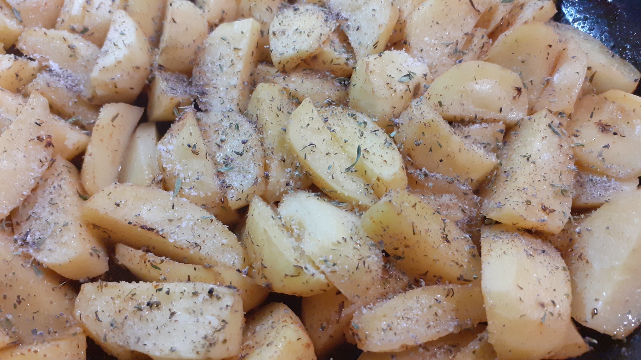 Лаврак с картофи, бяха цели рибки, но ММ си ги пожела обезглавени, за да не го гледат от чинията Laughing