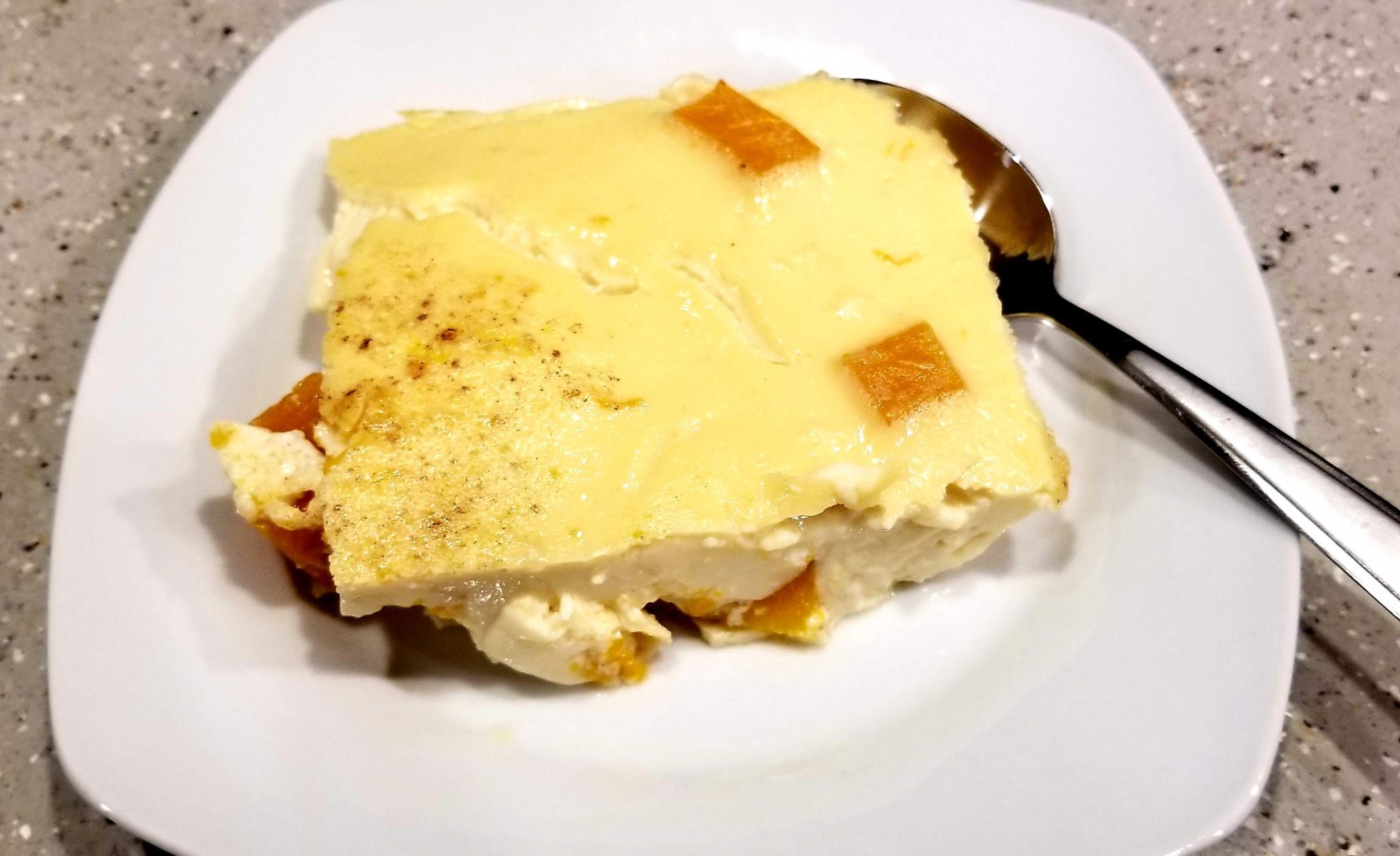 Благодаря, mariat , слагам 6 яйца, 1 л мляко, 1 1/2 чч захар и две ванилии. Разбивам добре. Пече се час и половина на 130 градуса без вентилатор