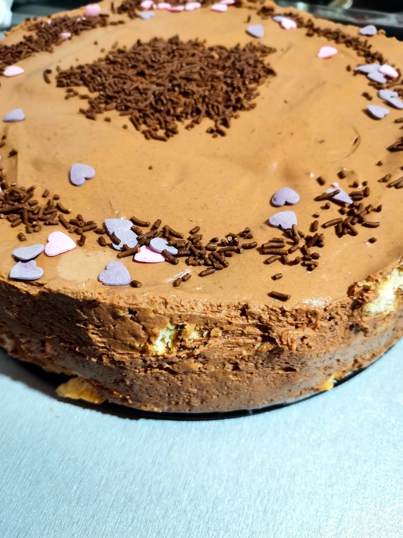 Бисквитена торта с маскарпоне и шоколад, която беше прецакана от МП, поне сколасах да я снимам . 😁 (прибра я "гола" в хладилника и тя попи всички миризми)