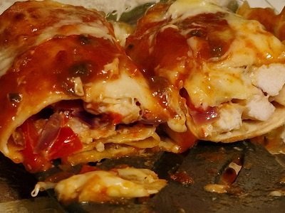 Запържват се лук, чушка  (най-добре червена) и пилешки гърди на ивици, добавят се сол и подправки (кимион, чесън, червен пипер, риган, лют пипер), завиват се в лаваш като палачинка, отгоре се слагат домати или доматен сос и настърган кашкавал и се запича за около 20мин на фурна да се зачерви кашкавала. У нас се харесват гарнирани с пържен боб и заквасена сметана, понякога добавям гуакамоле, но в момента нямах авокадо.