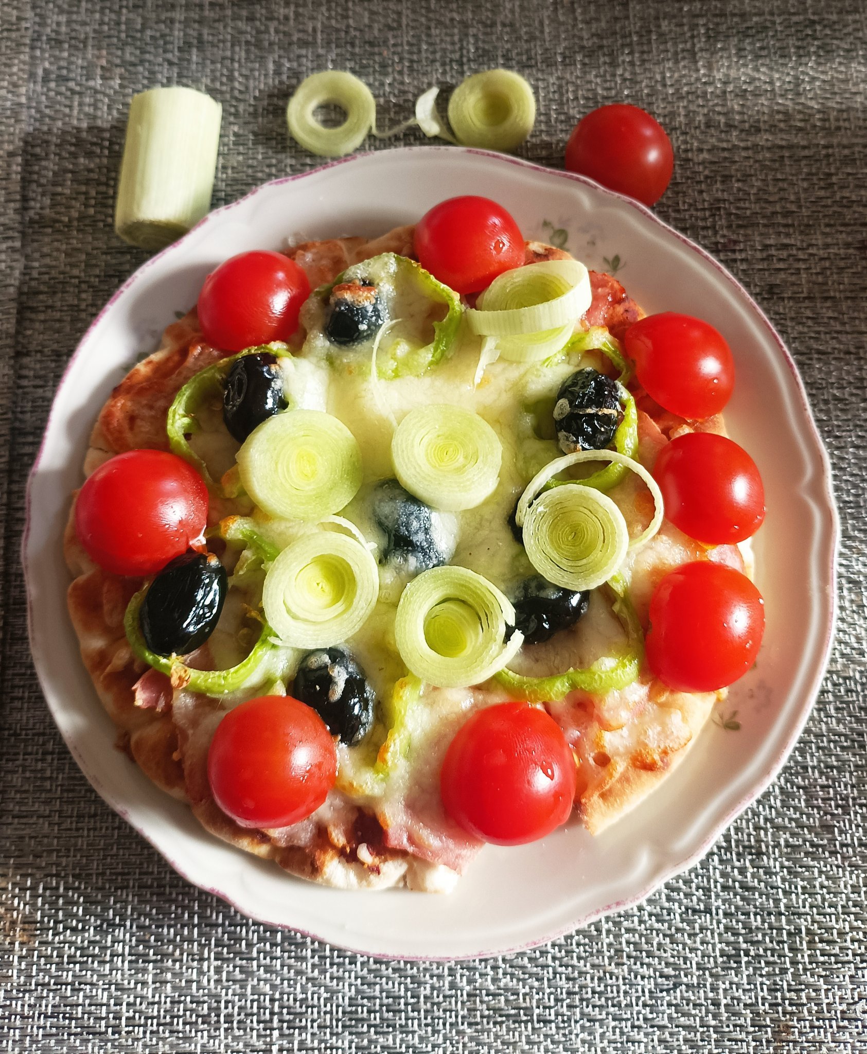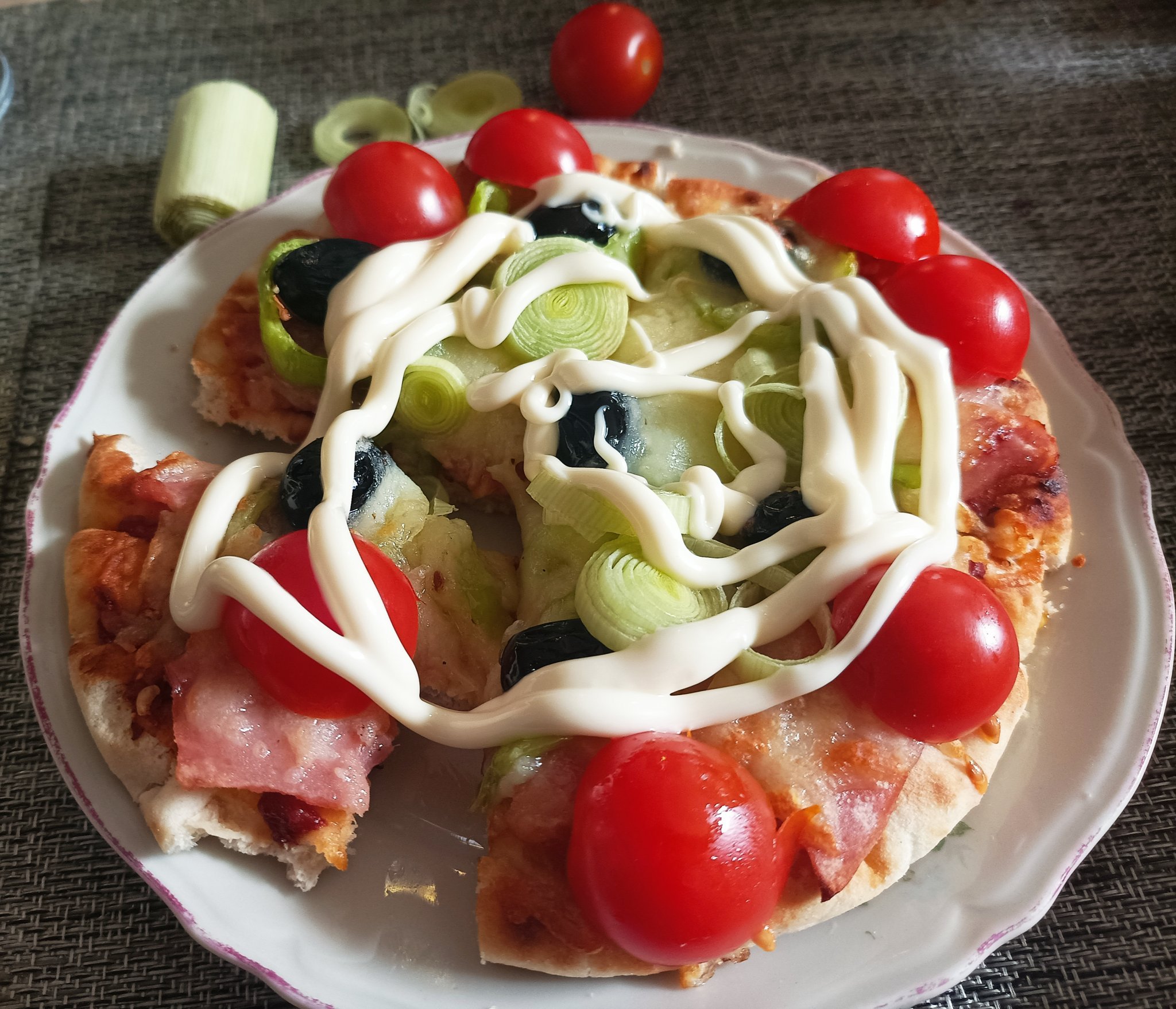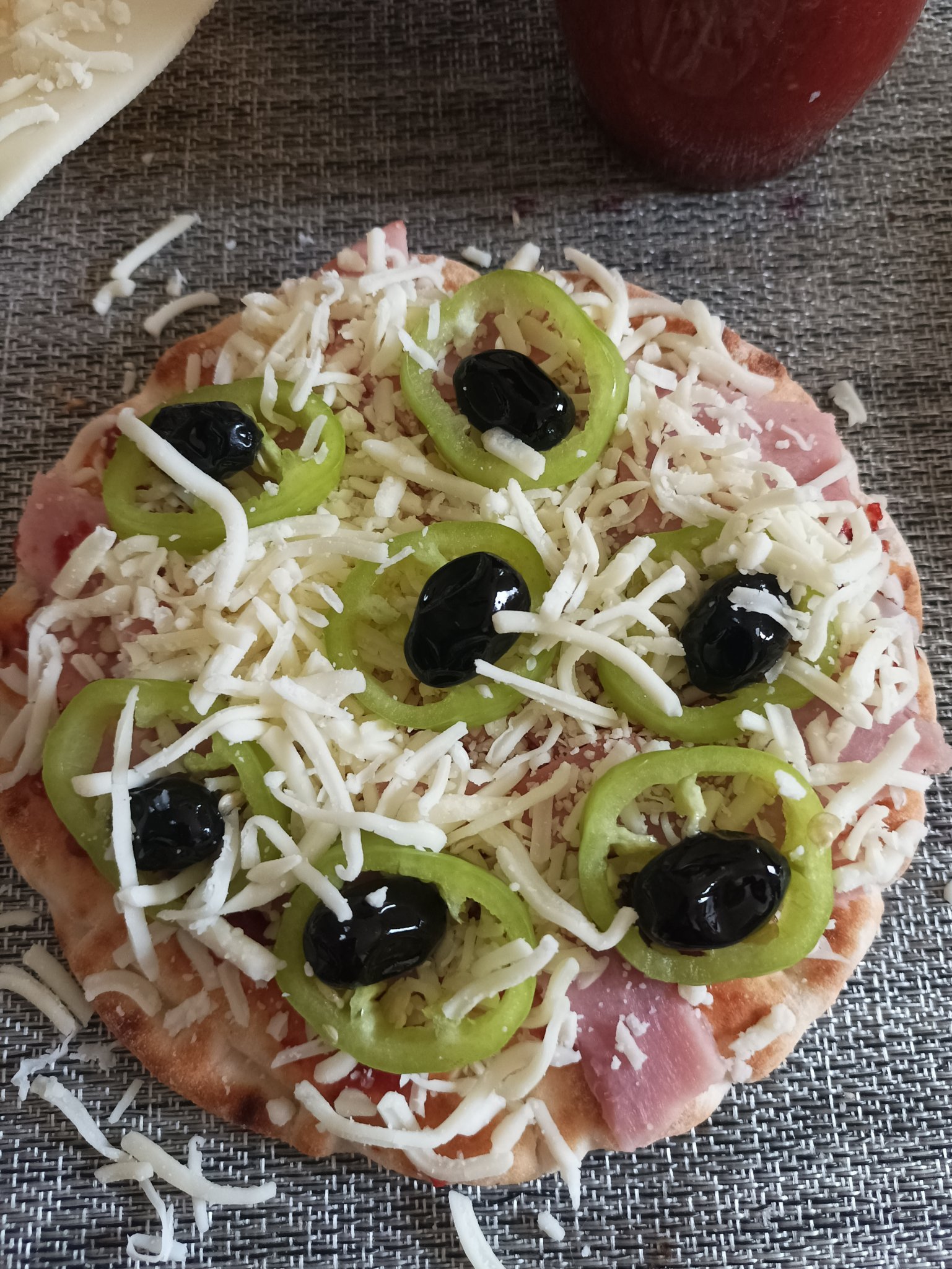 От мен един бърз и мързелив обяд- и шарен 😊 (пица от гръцки питки)
