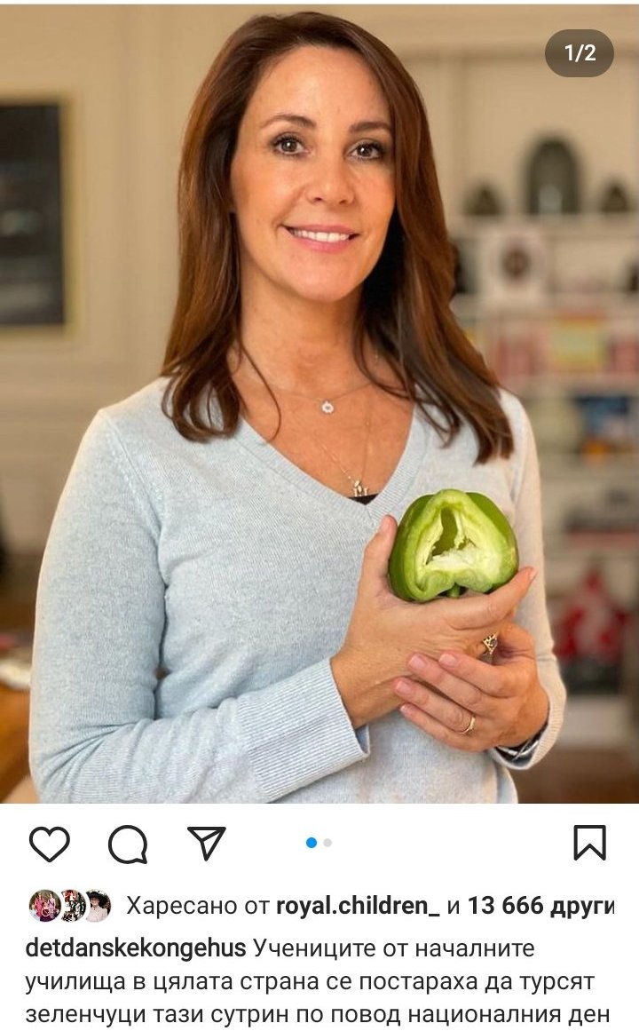 Мари  на снимка от  кампанията ѝ за  "спасяване на храна" в училищата в Дания,качена  на профила им онзи ден. Много харесвам тази и инициатива, която тя развива от много години.