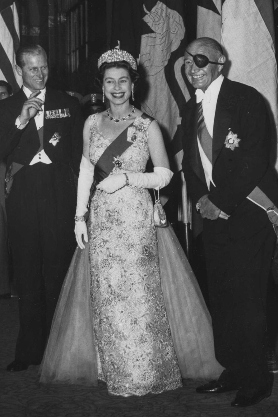 Няма снимки от приема, затова качвам снимки от 1957, когато Кралицата и Филип са присъствали на гала вечеря на огранизацията в Ню Йорк.