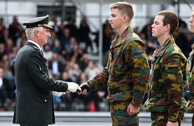 19-годишният принц Габриел получава своята синя барета от баща си крал Филип. Той завършва своята 5-седмична военна начална фаза и продължава обучението си в Кралската военна академия.