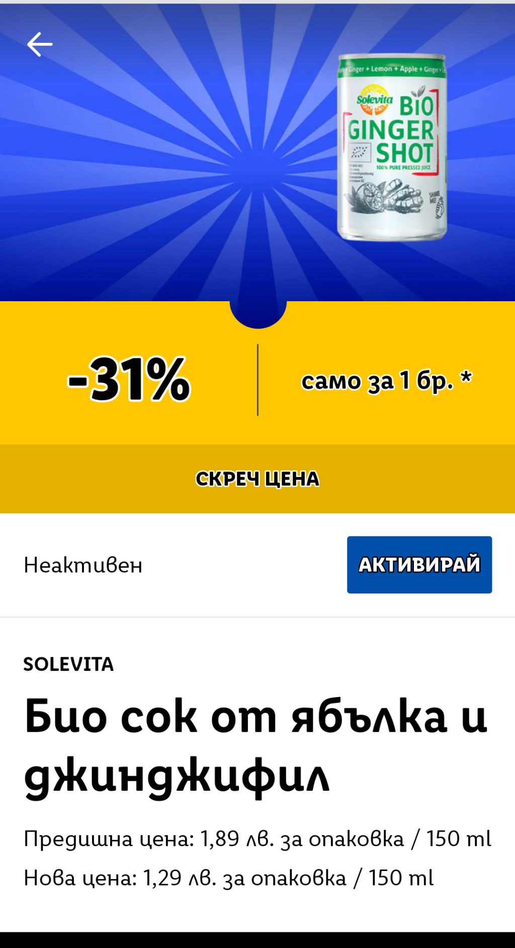 Доколкото помня беше към 1.29 ябълката с джинджифил, няма как да е била чак на 50 ст. Харесвам го и аз, имам все по някое кенче от него вкъщи. Ще погледна на каква цена съм го купувала преди.