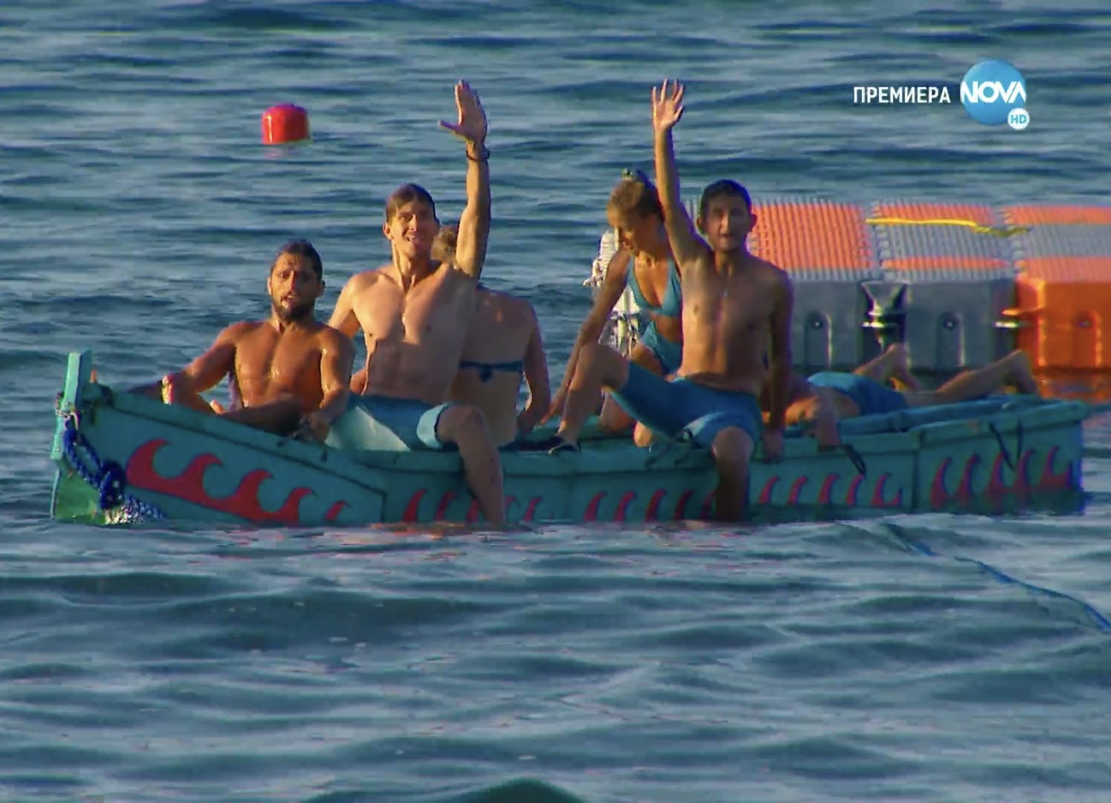 Тук Илиян и Касим махат на близките си, които ги чакат на брега 🤣🤣🤣 Никой не вижда, че Алекса потъва 🤣🤣🤣