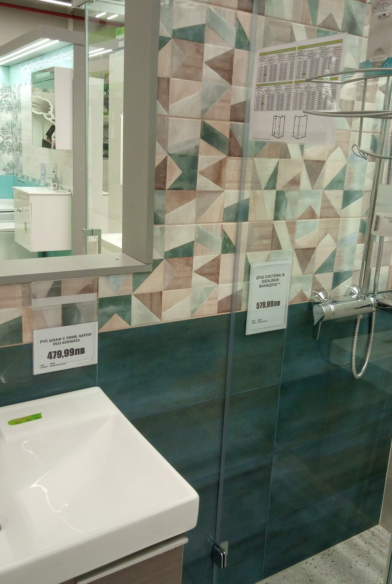 Hala, нямаме тоалетна в банята, с две отделни помещения сме. Имаш предвид шарените от долу до горе ли?
