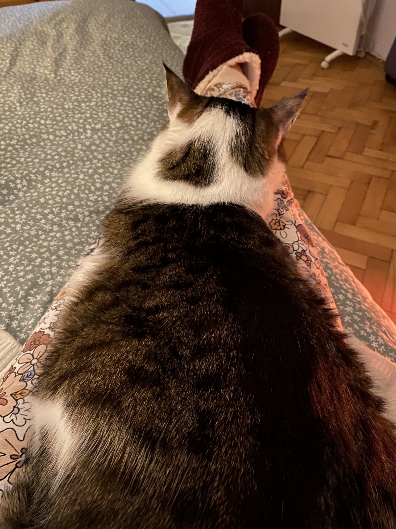 Дъждец, нашата по същия начин, доста замаяна и това е единствената вечер, в която просто се сгуши и спа цяла нощ до нас, без да мръдне до сутринта. На следващия ден вече си беше адекватна. Тя по принцип нашата хич не е по спането нощем, много е активна рано призори. Днес например, стана с развиделяването, демек в 4.45ч сутринта и ни събуди, разбира се.