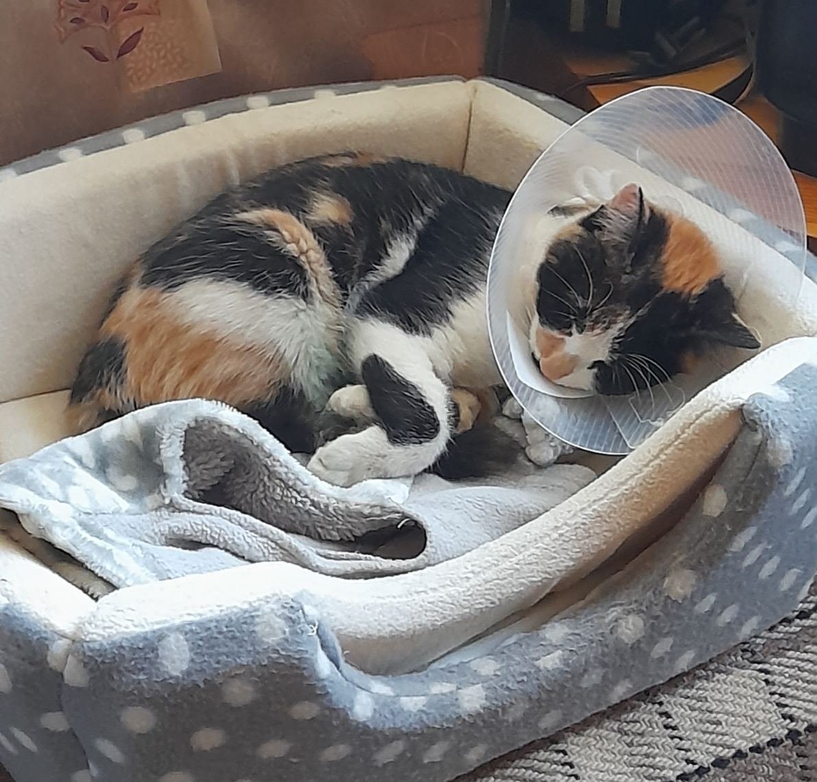Изпратиха ми снимка и на Бебка след кастрацията- много сърдита и нещастна била... Е, как да е щастлива в този вид...