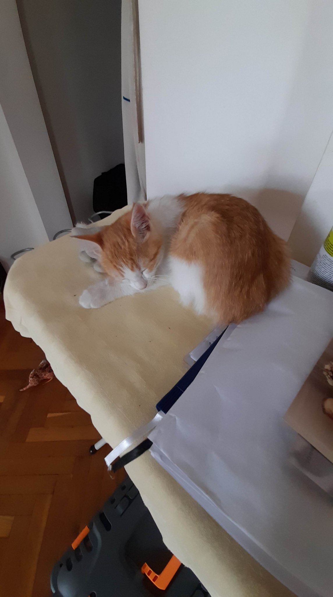 Като сложа яката, пак унива, но инапе напира да си ближе операцията.