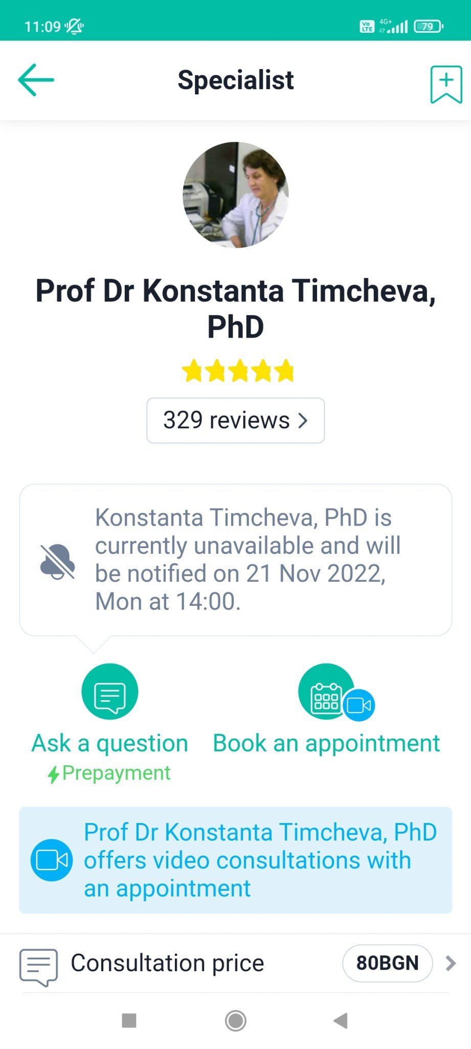 Ето оттук опитвам. Правилно ли да разбирам, че до 21.11 не е на линия? И също от "Ask a question" ли става записването за консултация? Предварително благодаря!