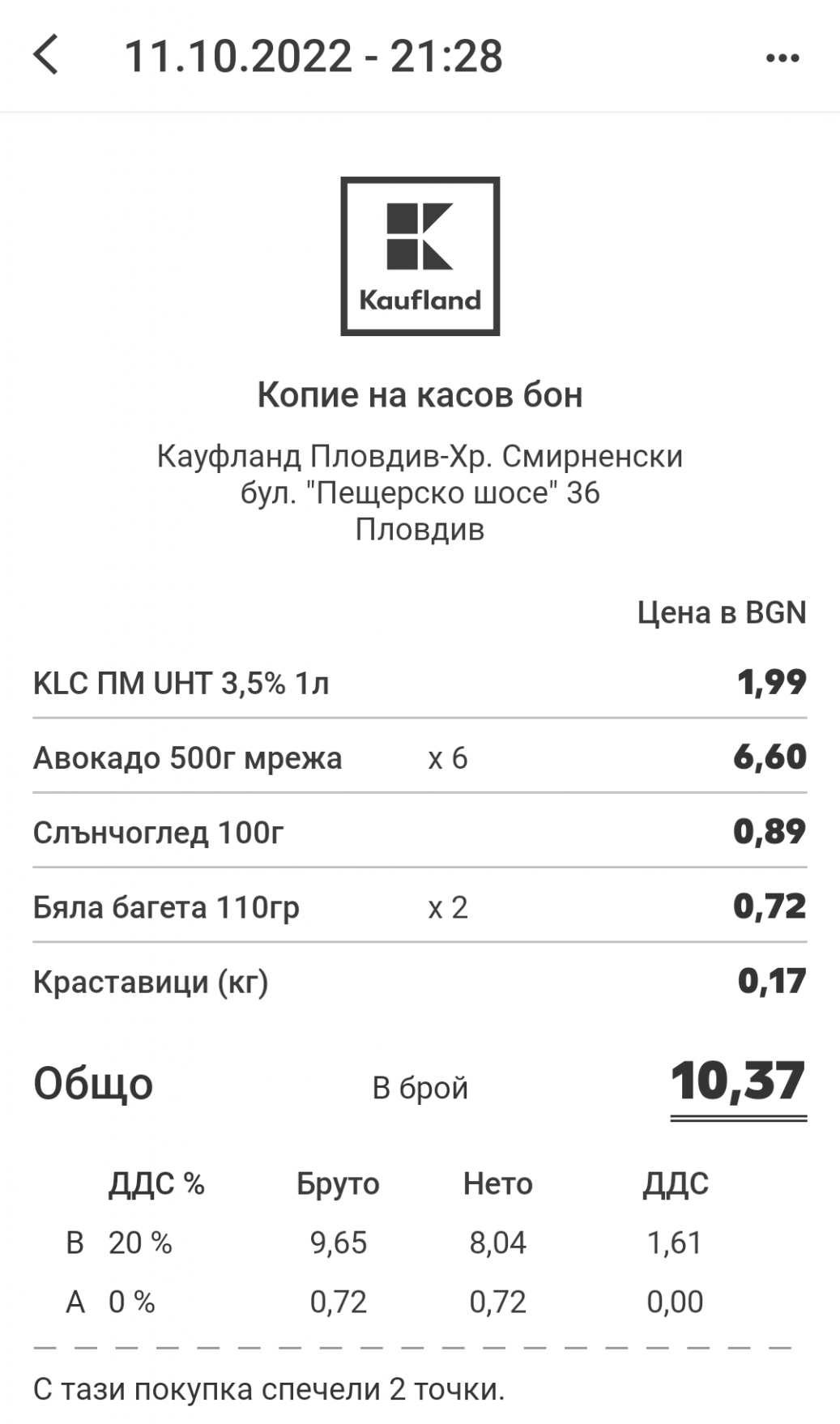 Аз купувам почти всяка седмица поне по един продукт, който е намален с картата. И аз съм придобила вече навици да сканирам картата (не ме интересуват чак толкова точките, а копията ма касови бележки и намаленията).
