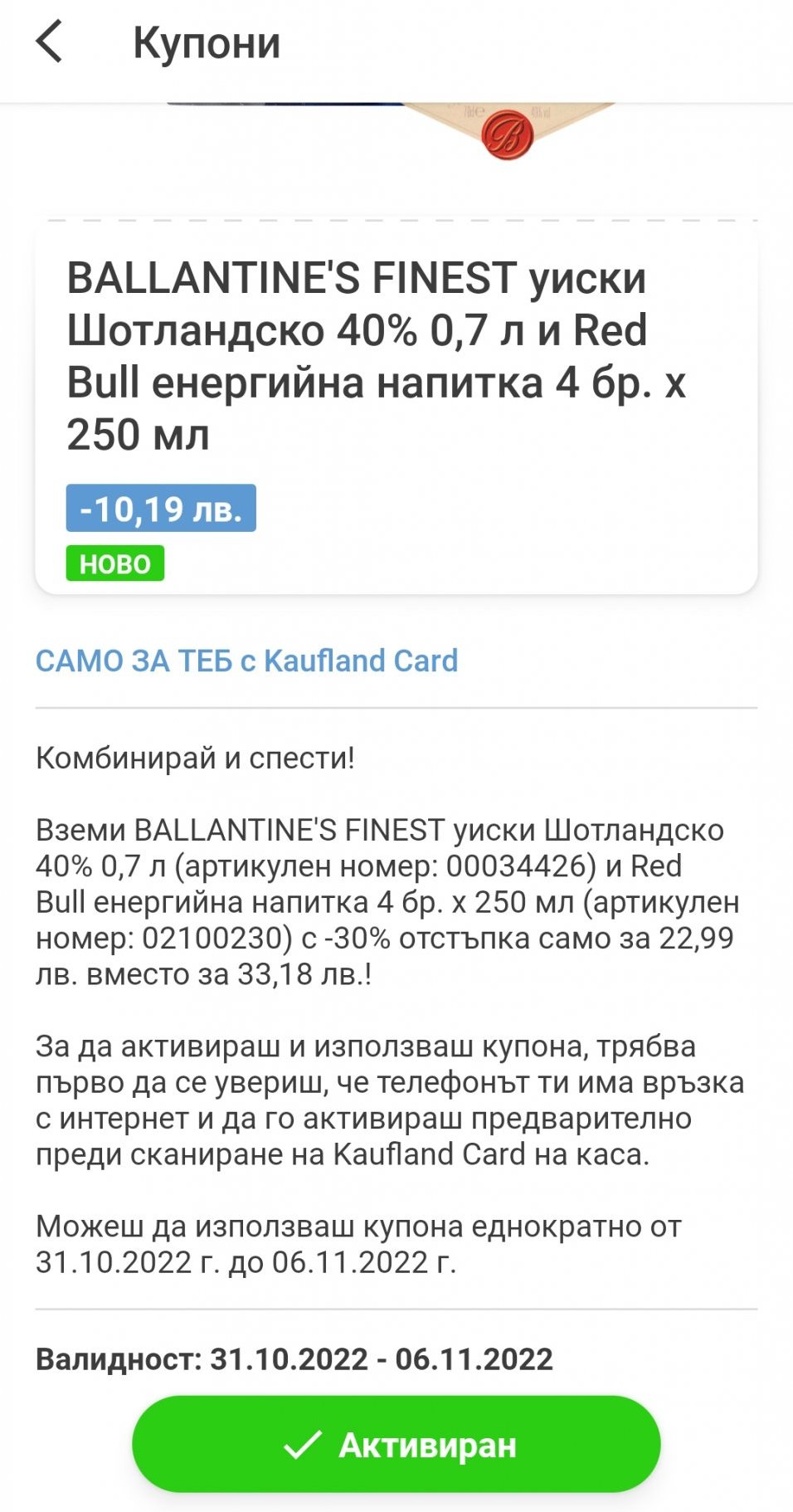 Имам купон за Balantines + 4бр. RedBull, ако някои се интересува да пише.