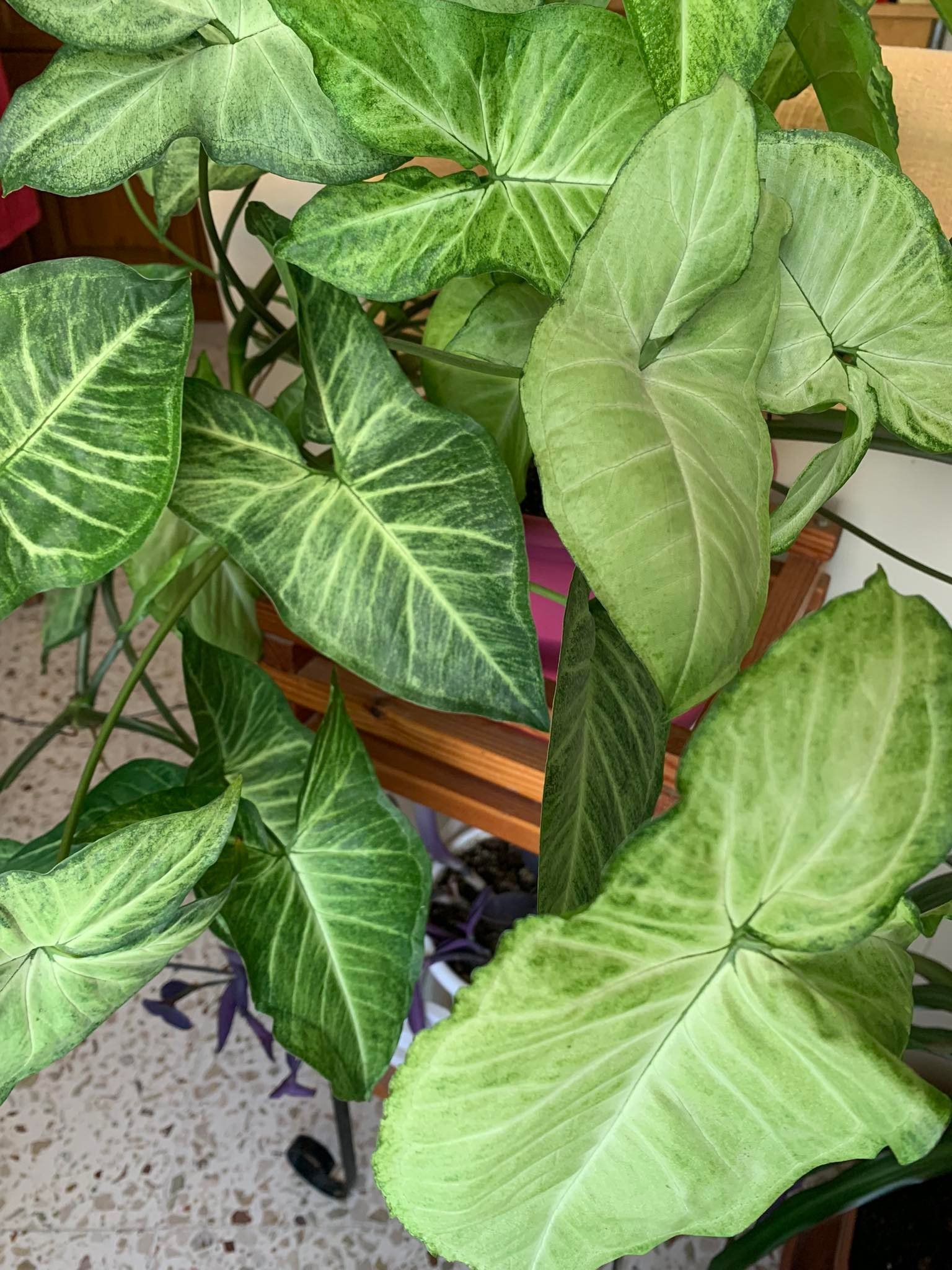сингониума май му отесня саксията, но не мога да го хвана целия в кадър, че е много рошав Simple Smile