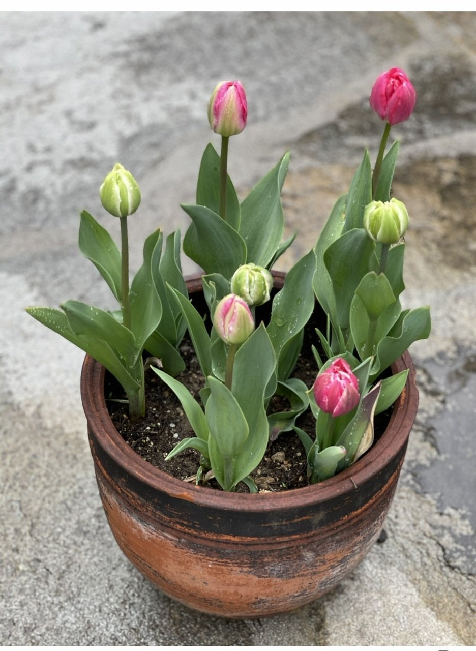 От 2-3 години слагам лалета в големи саксии и цяла зима са вън. Стоят много красиво като цъфнат . Мин година сложих и ириси още нещо.